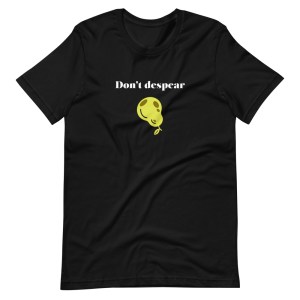 “This tee was created to raise awareness about food waste, but like most of my puns, it has 2 meanings. For people who want to stay optimistic about COVID 19 and recognize it’s out of our control, this is a great message to wear. Stay positive in these troubled ‘thymes’ and don’t despear! This tee will help reduce your anxiety and cheer you up.”