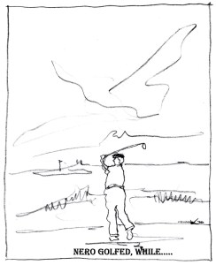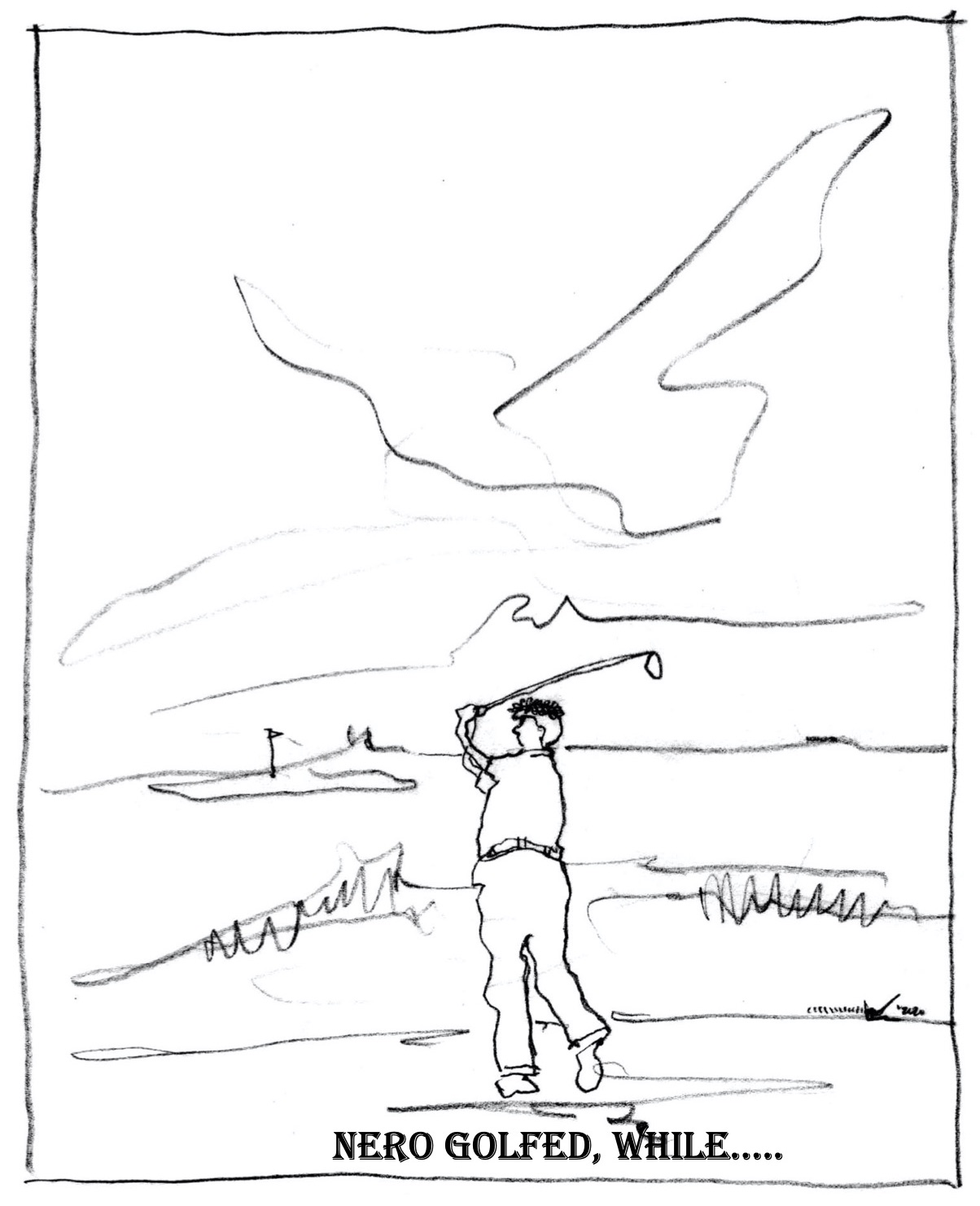 “POTUS 45 golfed while Covid 19 raged in America (and world-wide), not unlike the historical reference of Nero fiddling while Rome burned.”