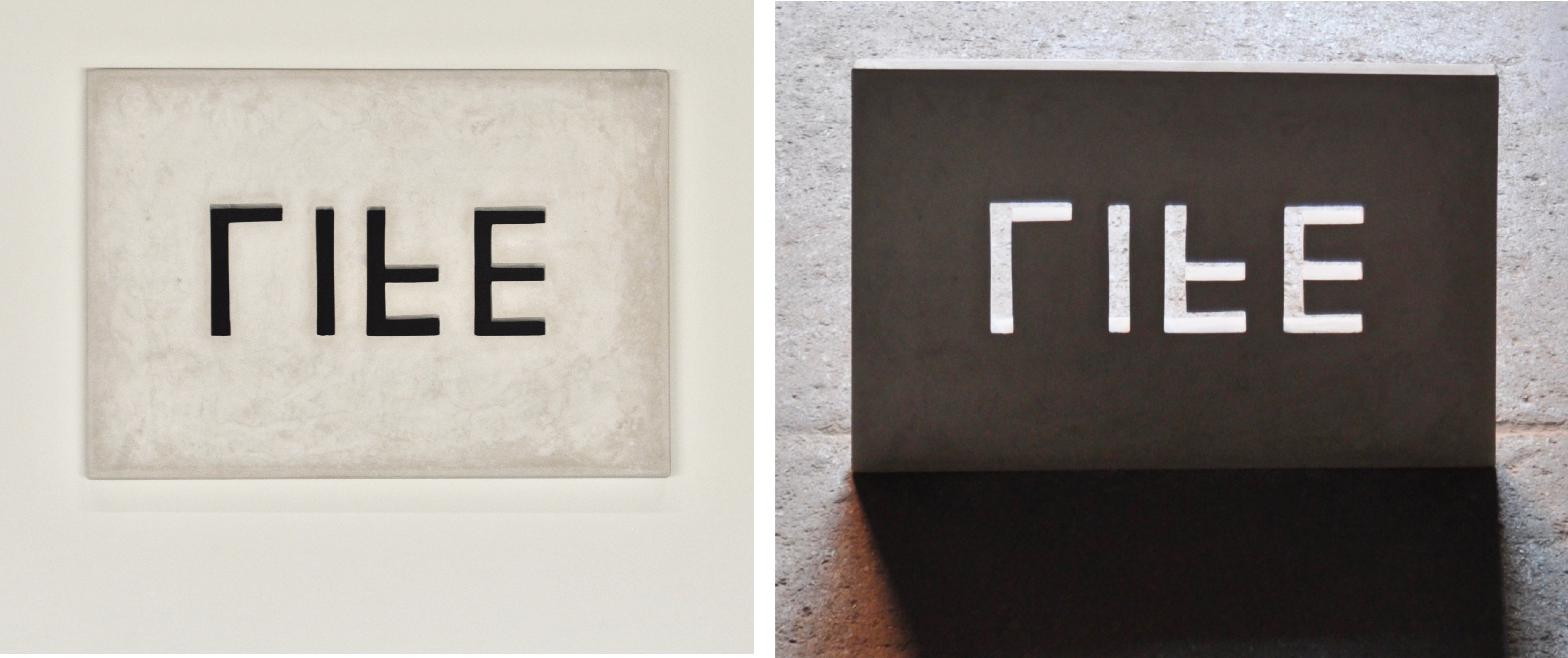 gypsum cement; each 16×21.5x.75″; cast text panel displayed mounted and free standing