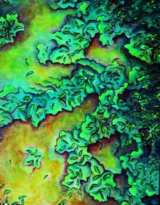 I like this piece, Molly. Everything is held together in so many ways. A birds-eye view helps us see the shading and the “kudzu” is multi-faceted and multi-colored. Nice work….Donna Hoffman