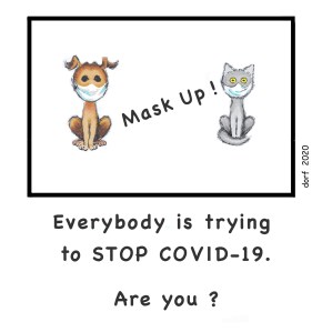 ARTIST BIO: Old, old illustrator trying to process the condition of this country and the world. In March, Dorothy Gehres Fraembs pulled out a yellowed tear sheet of a panel that she did in 1970 and added masks. As the year goes on, she keeps adding panels on FACEBOOK.
