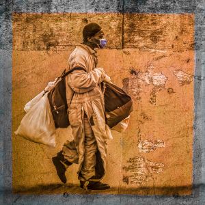 “This piece was made by combining several photos, including one of a woman named Catherine. The original was given to the Montgomery County Homeless Solutions team.”