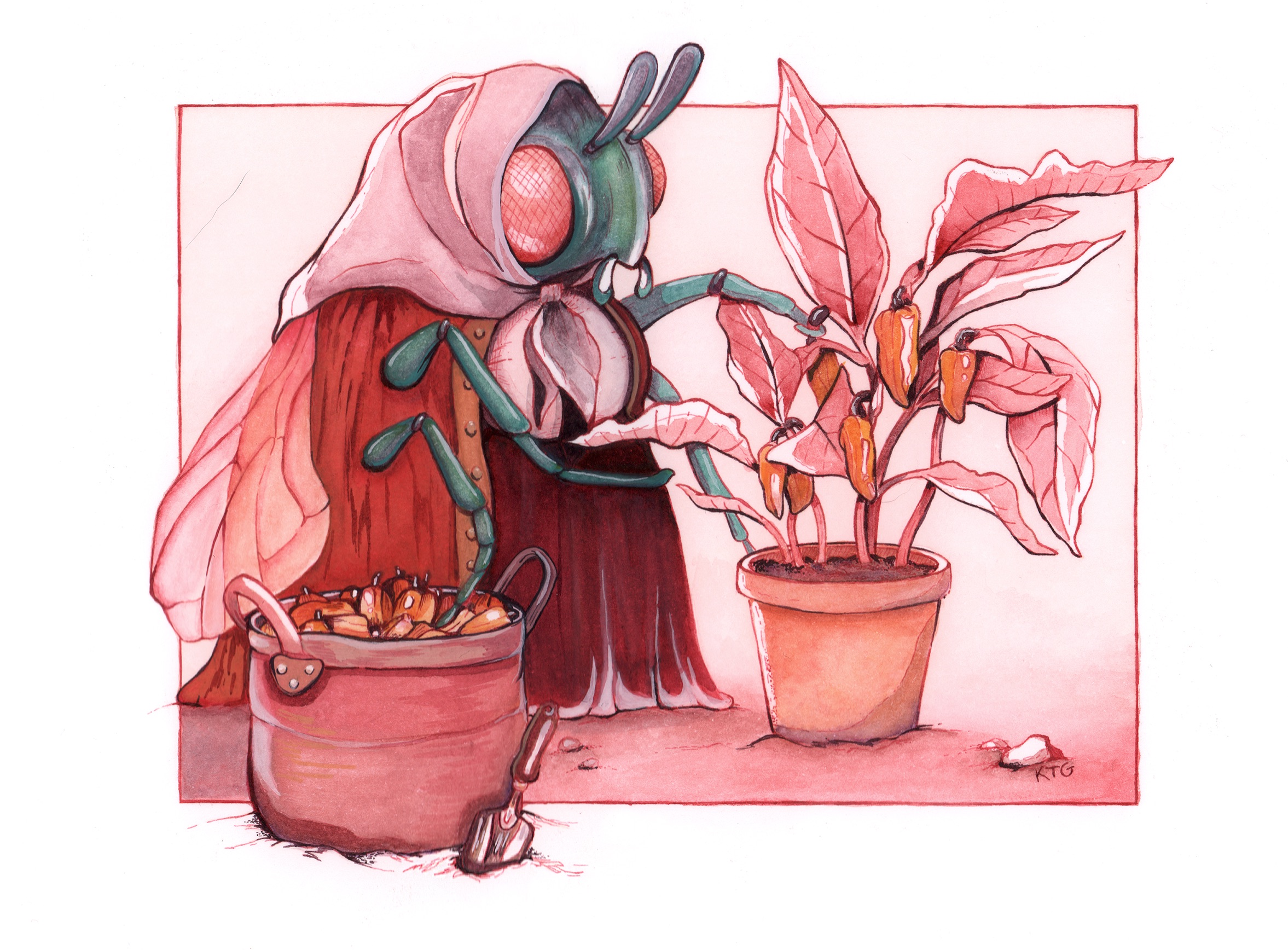 gouache, watercolor, ink; 6×8″
