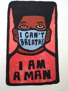 “My screen print uses words from two civil rights movements, ‘I Can’t Breathe’ from Black Lives Matter and ‘I Am a Man’ from the 1968 Sanitation Workers Strike, a sign the protesters wore during their protests. It shows the inequality and the injustice that people of color have suffered all along.”