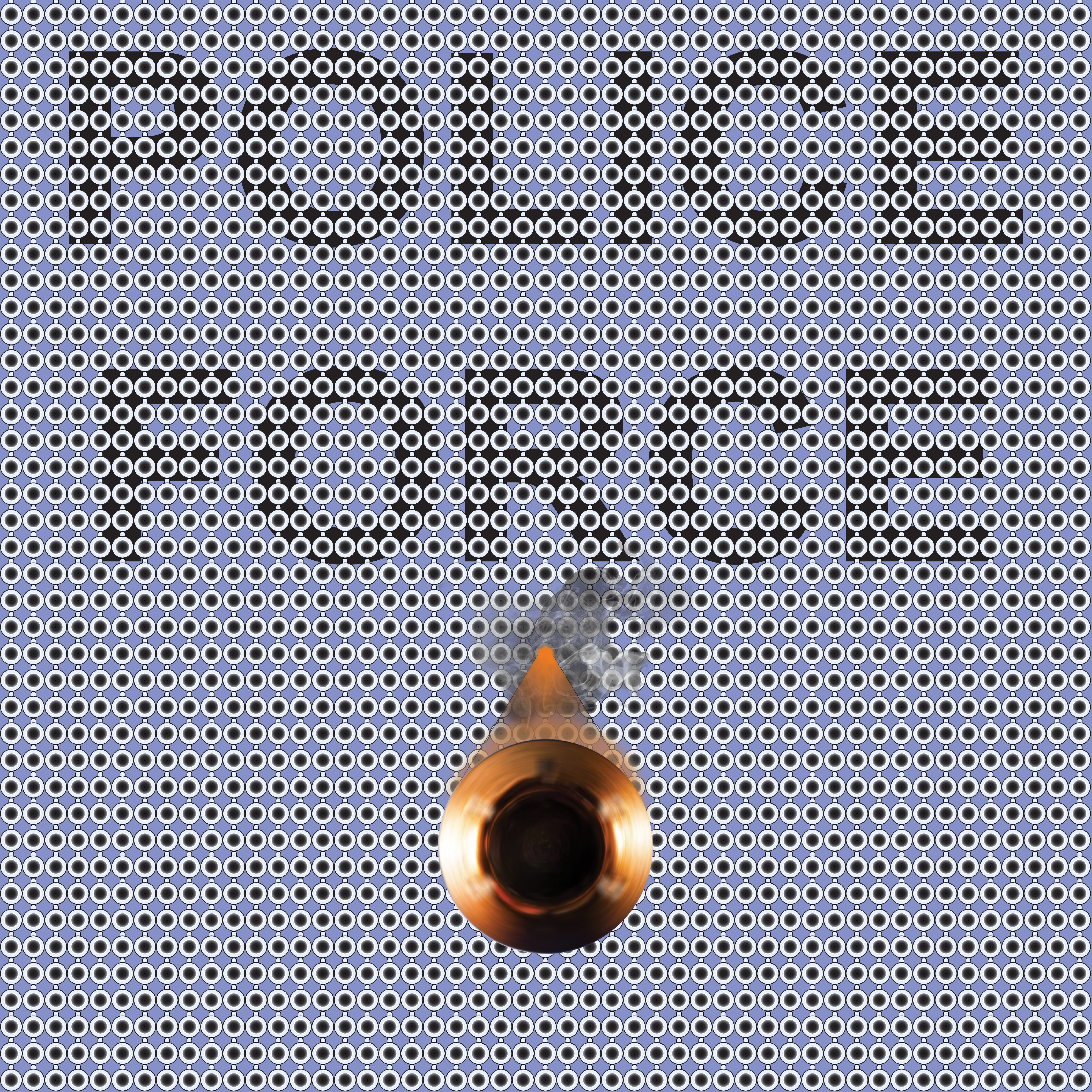 “This piece is inspired by Police frequently using deadly force when there is unwarranted cause. In a field of blue a multitude of gun barrels point forward and a bullet escapes from one of them hurtling toward the viewer. The practice of shoot first, ask questions later can protect an officer if they feel threatened, but can quickly end a life. Kill or be killed – there are no easy solutions to this problem.”
