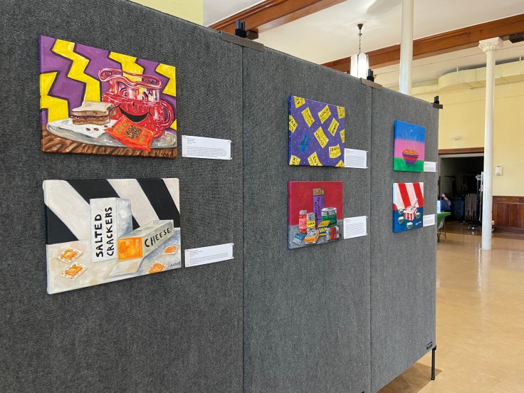 Our inaugural artist in residence was artist and educator, Chrissy Collopy. For her residency, Collopy created a series of still-life paintings featuring stigmatized foods, and taught a free community workshop where students created collages centered on that same concept.