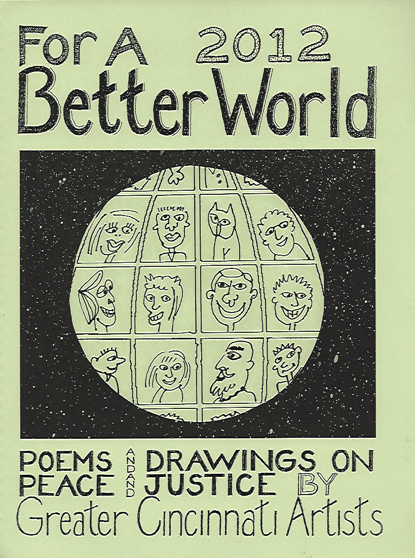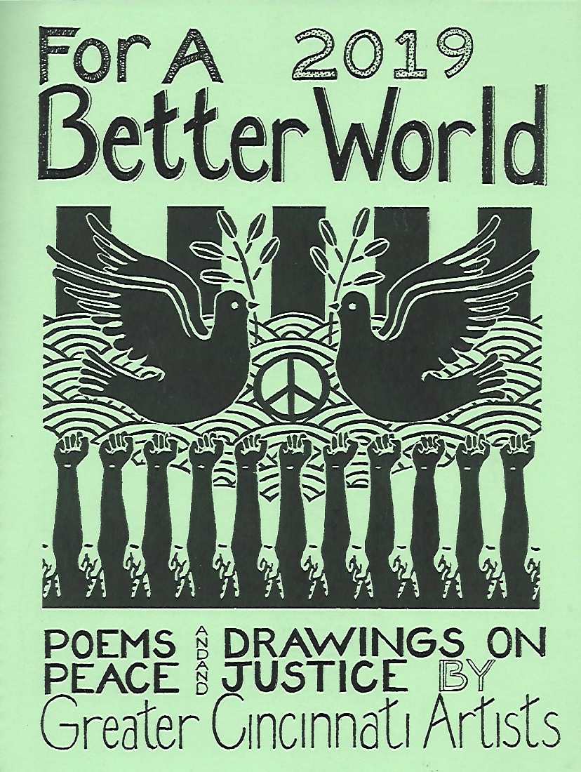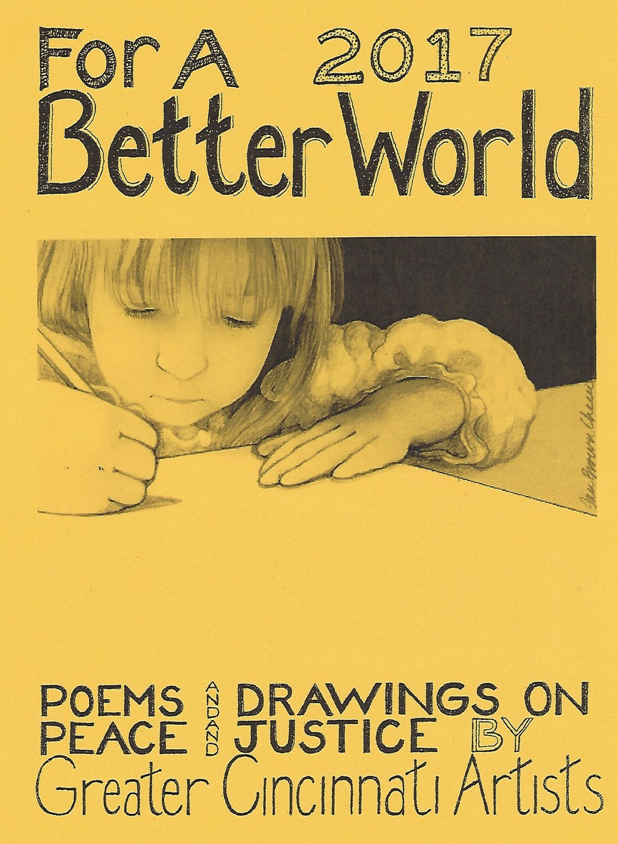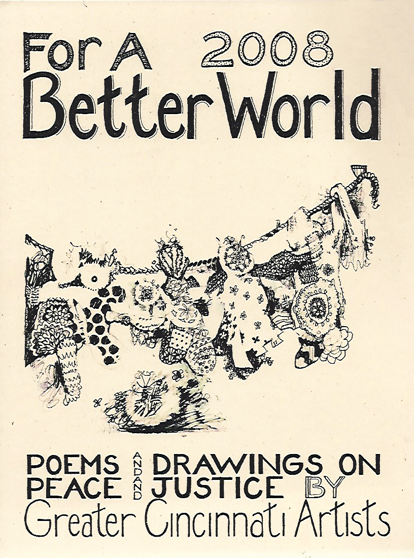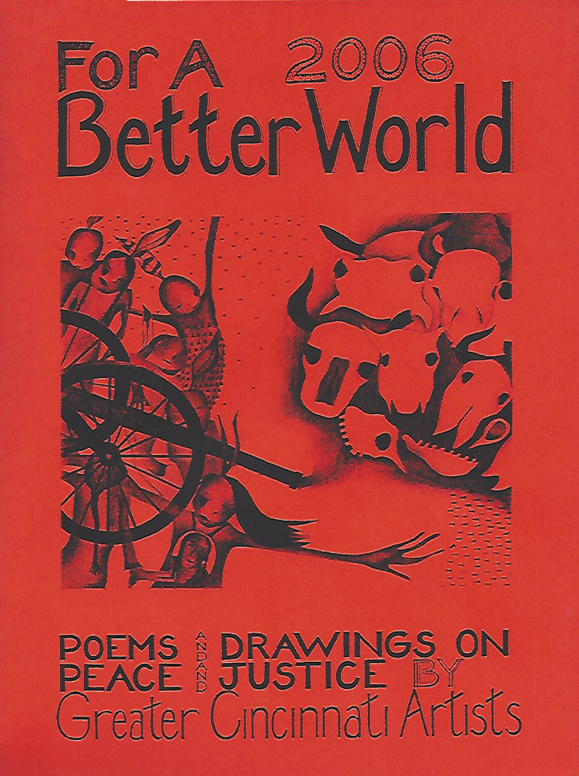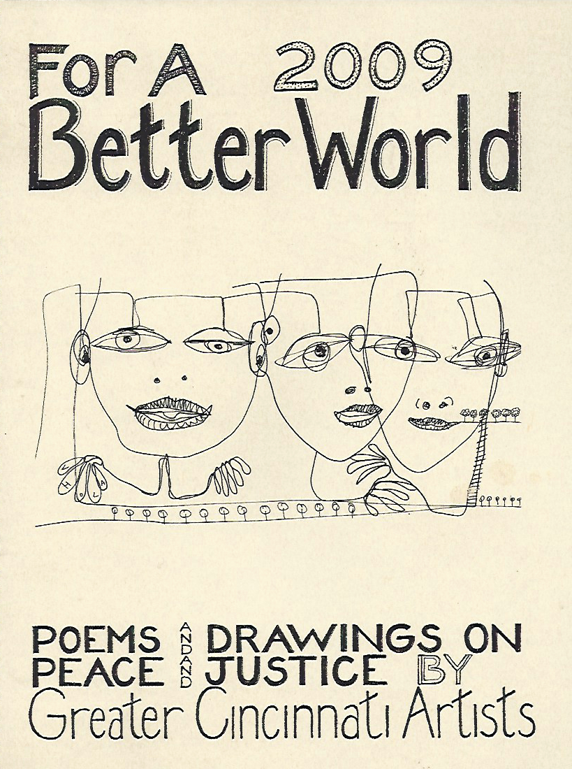 SOS ART Cincinnati publishes works from its events, also works highlighting local artists and their work for peace and justice and for a better world. This includes, among others, the yearly “SOS ART” book documenting the yearly SOS ART collective exhibit and art festival for peace and justice and the yearly anthology “For a Better World,”a book of poems and drawings on peace and justice by Greater Cincinnati artists.