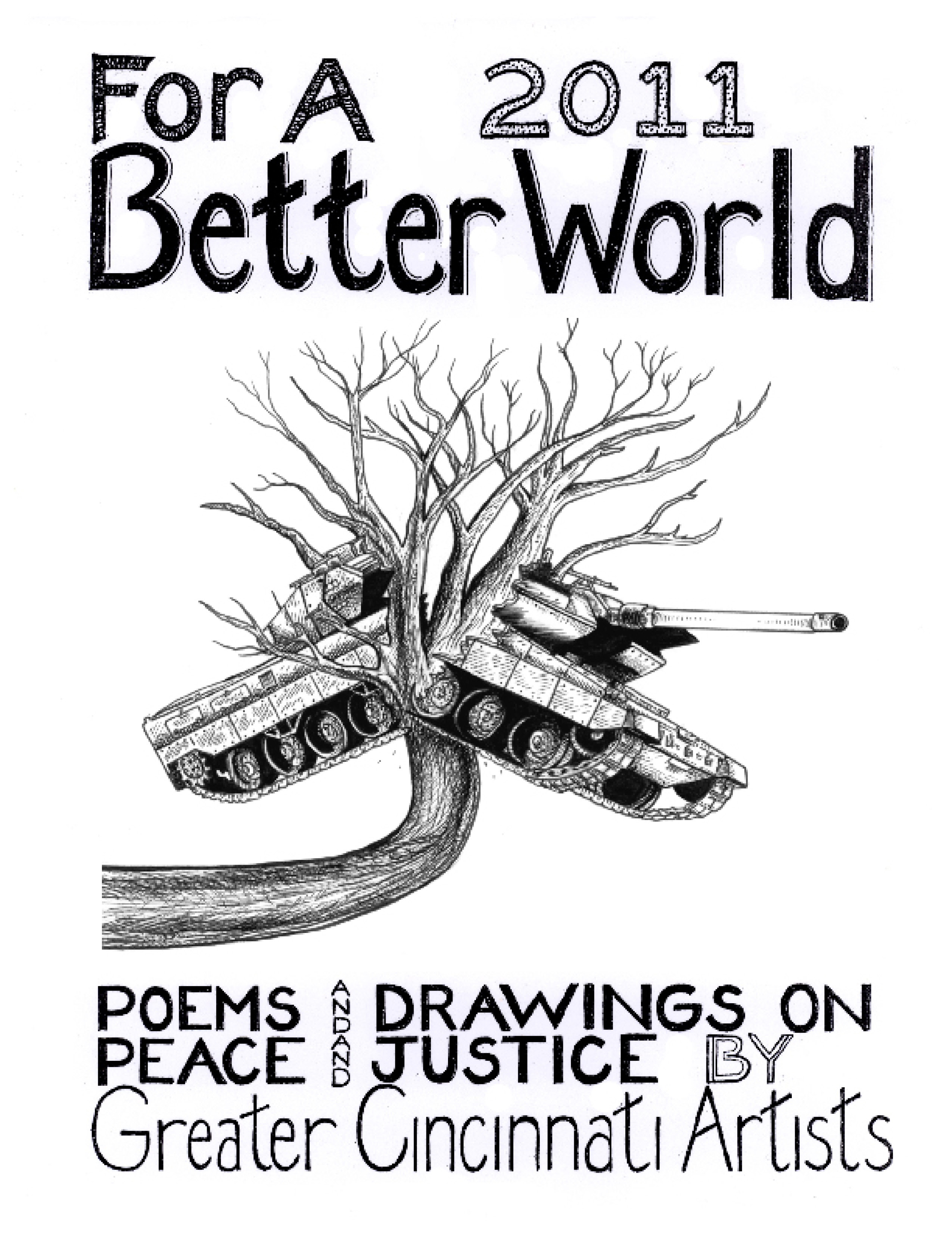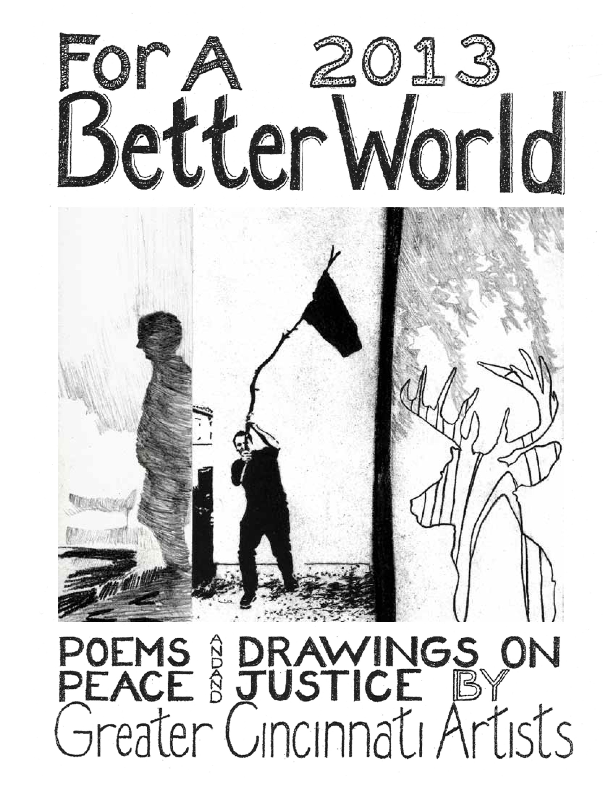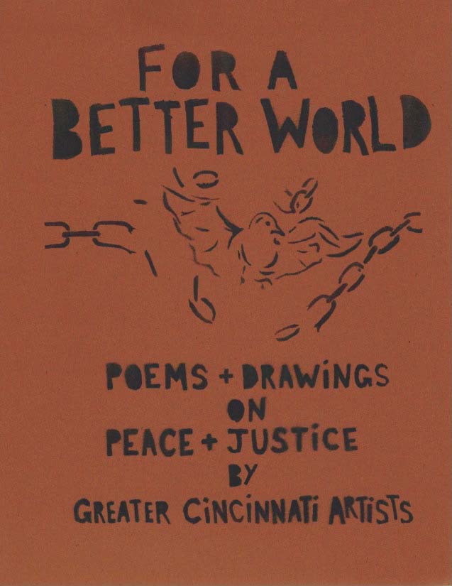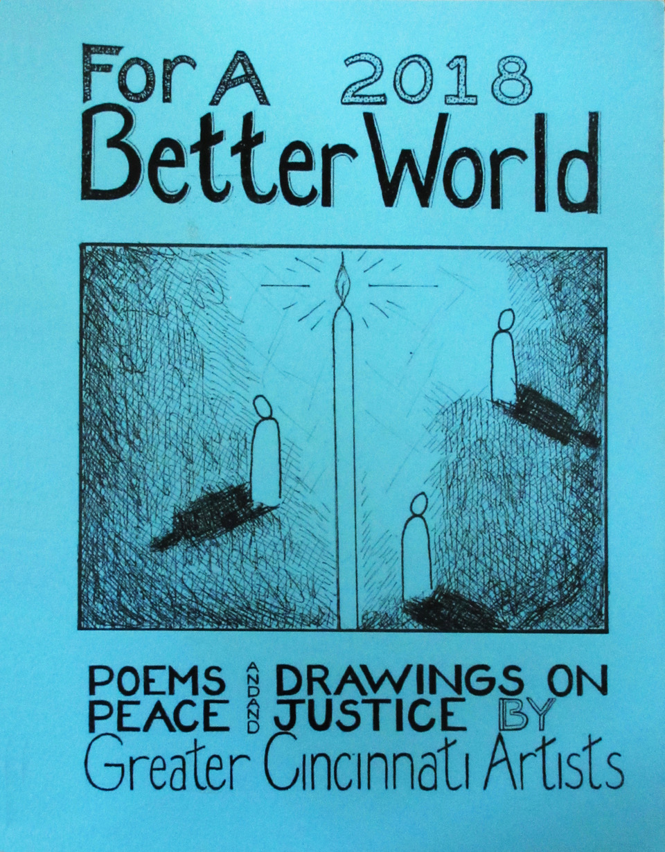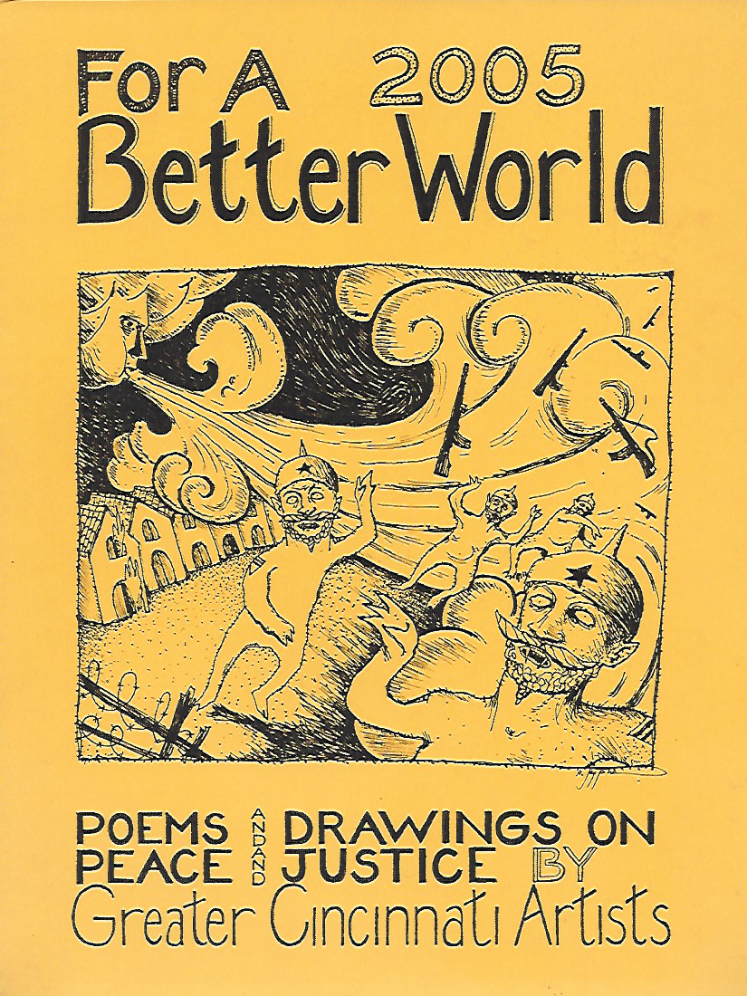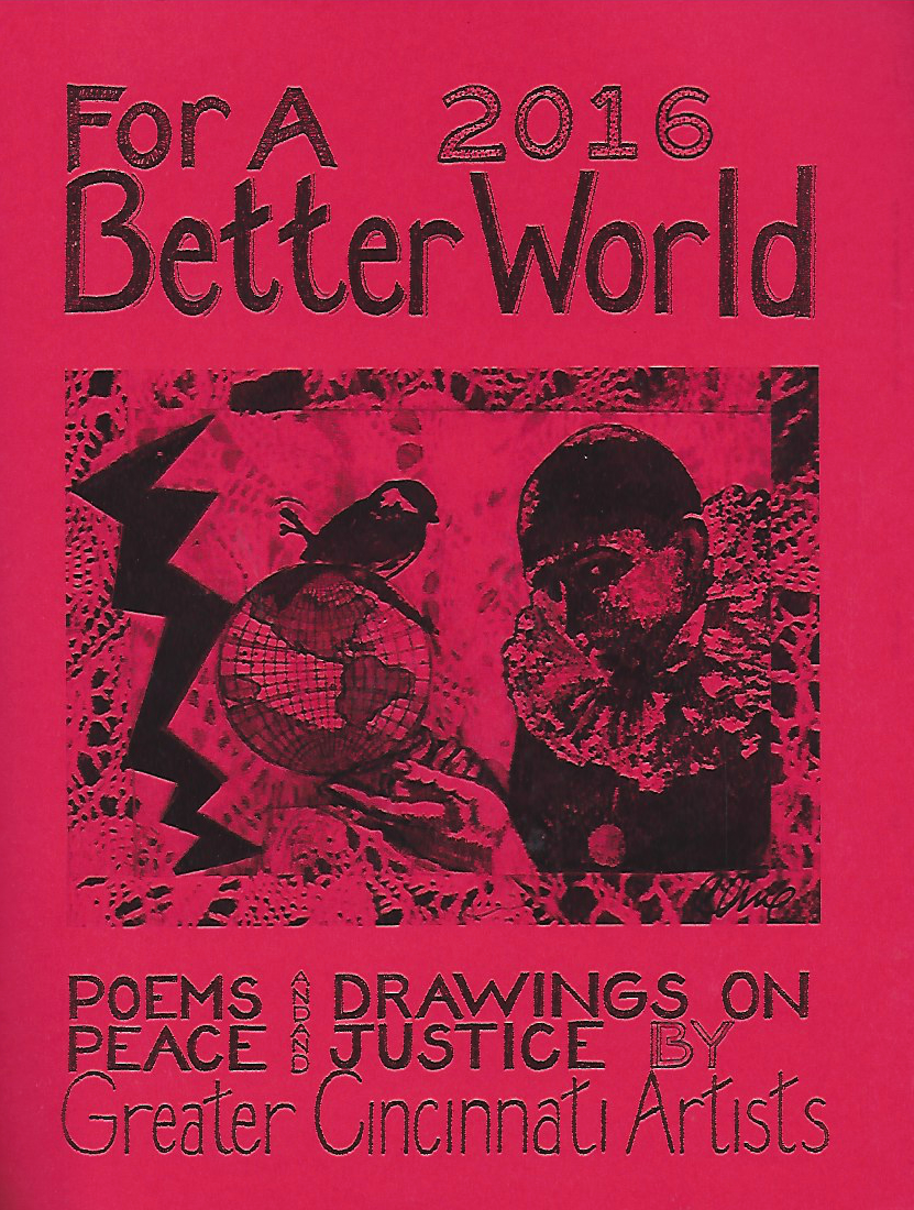 SOS ART Cincinnati publishes works from its events, also works highlighting local artists and their work for peace and justice and for a better world. This includes, among others, the yearly “SOS ART” book documenting the yearly SOS ART collective exhibit and art festival for peace and justice and the yearly anthology “For a Better World,”a book of poems and drawings on peace and justice by Greater Cincinnati artists.