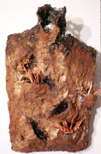 wire, cement, latex paint, leaves, straw; 25x18x10