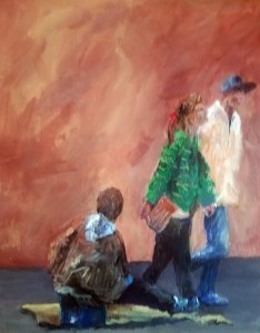 “This is a representation of a man whom I saw sit outside of a department store on 5th street and how people would walk past him as if he didn’t even ex ist.”