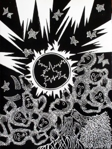 woodcut print on Rives BFK; 30×22″