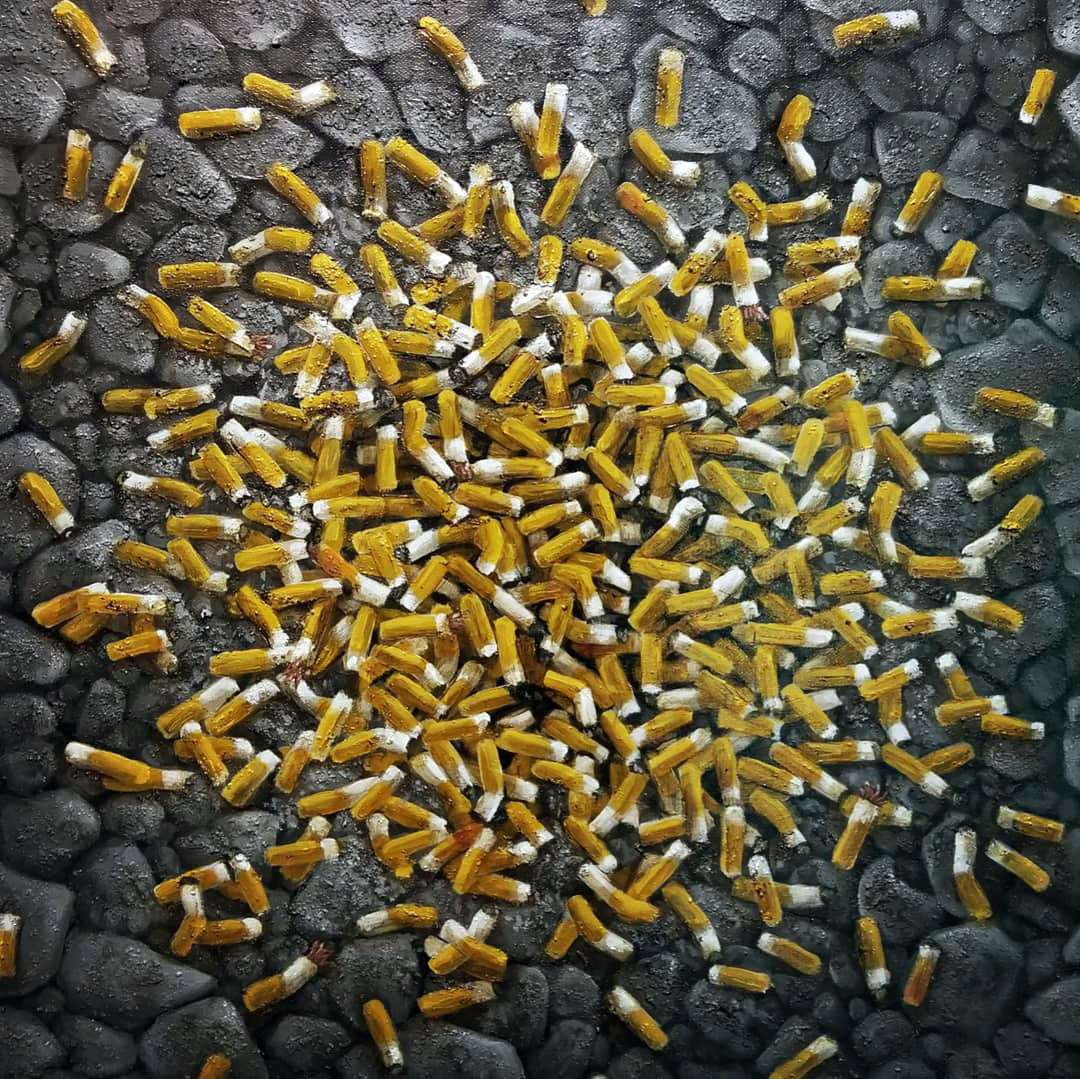 ARTIST BIO: Devon Horton is an oil painter working in Northern Kentucky and her newest series “Penchant” confronts our culture’s obsession with consumption and waste. Each painting features a foreboding pile of trash which relates to a tradition or ritual imbedded in our daily lives and society.