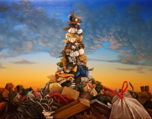 ARTIST BIO: Devon Horton is an oil painter working in Northern Kentucky and her newest series “Penchant” confronts our culture’s obsession with consumption and waste. Each painting features a foreboding pile of trash which relates to a tradition or ritual imbedded in our daily lives and society.