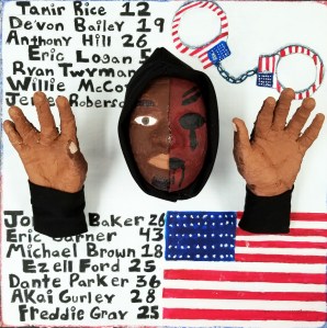“My art piece is a visual representation of my views on the current state of freedom, peace, and justice in America. As a person of color, I feel that there are a lot more barriers and social stigmas that prevent us from truly living the ‘American Dream’. One issue in particular of pressing importance is police brutality among people of color who are frequently accused, questioned, and targeted, often leading to being killed by the police. They are portrayed to the public as monsters, rather than looking at these people as victims. We as a nation need to dig deeper and see people for who they really are, not as they are portrayed. In America, we claim our justice system is effective in “innocent until proven guilty” but in reality, it is much the opposite. We have a “guilty until proven innocent” mindset, being very destructive to our society, leading to stereotypes and stigmas about races, genders, of many people and never seeing the real person.”