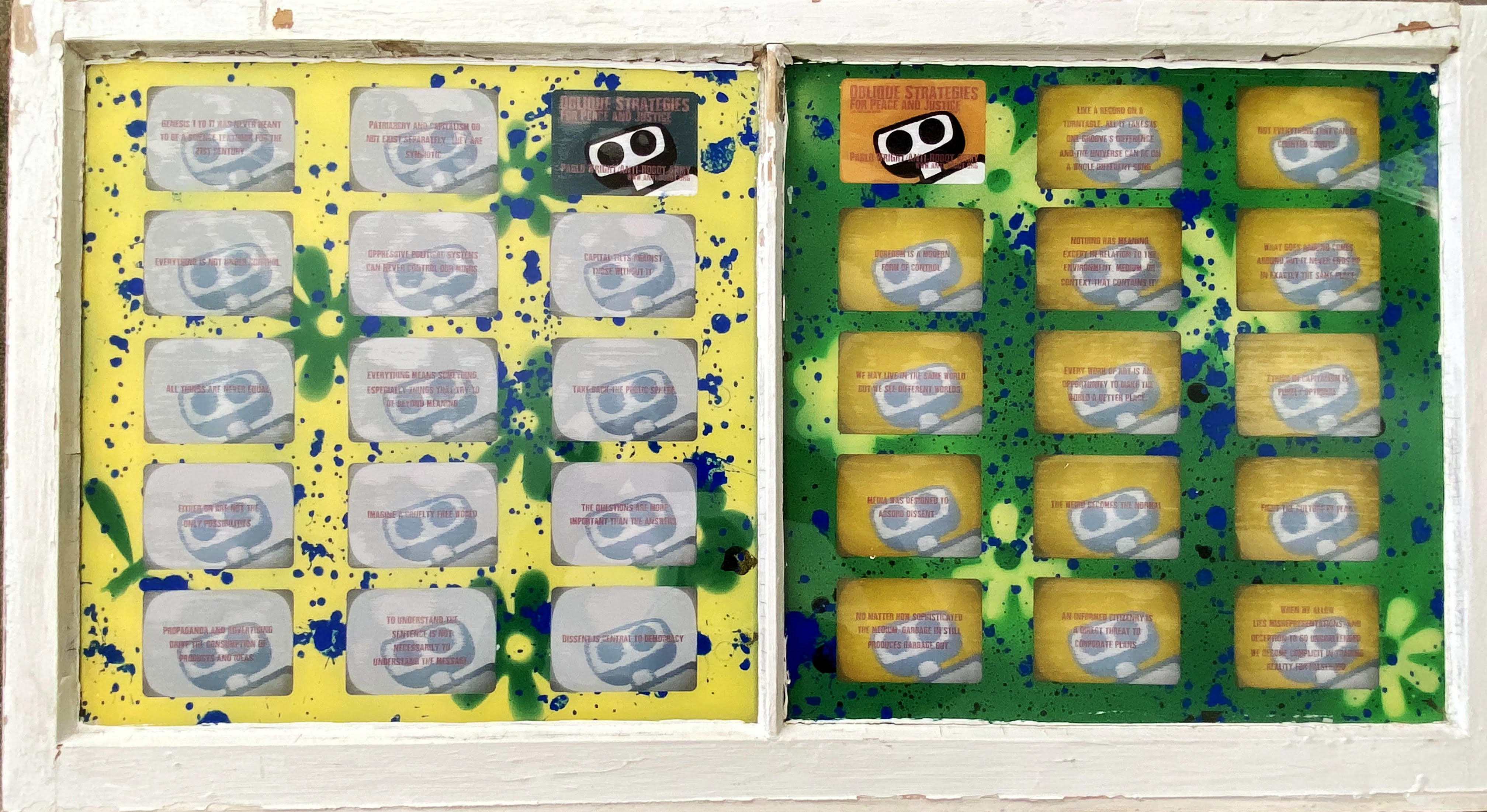 ARTIST BIO: Paul “Pablo” Wright is an artist who has been working in various mediums since he was a small child. From a purely artistic standpoint, he is a muralist working mostly in acrylics and spray paint. He enjoys creating abstract art using shades, tones and lots and lots of dots. There is also an overtly political side to Paul (see anti-robot.org) who creates books and linoleum block prints reflecting political angst using a Robot theme.