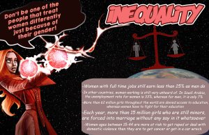 “Under the guidance of art teacher Francine Gibson, students at Oak Hills High School were called to design a PSA poster with a DC or Marvel Comic Hero or Villain Saving or Destroying the World from a Global Issue. Students chose a global issue after researching world news. After comparing and contrasting DC or Marvel Comic Heroes/Villains they chose the best character to represent their issue. Understanding the purpose of PSA in print, students create a poster that communicates awareness using the tools and techniques found in Photoshop to composite images with text.”