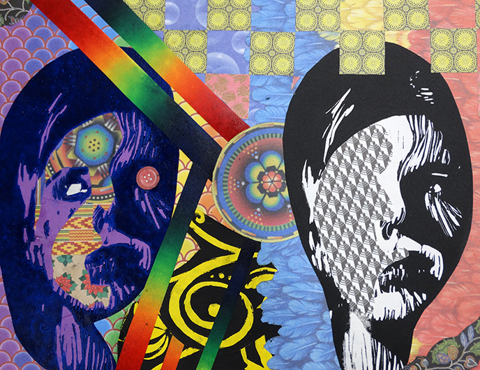 “Working under the guidance of art teacher Jamie Schorsch, students at Oak Hills High School researched some of today’s greatest socially conscious artists, such as Shepard Fairey, to discover what makes art powerful and life-changing. The mixed media print, collage-style work of art, communicates to the audience the students’ position on a social issue, a moral stance on a particular incident, or viewpoint on a topic that affects their life.”