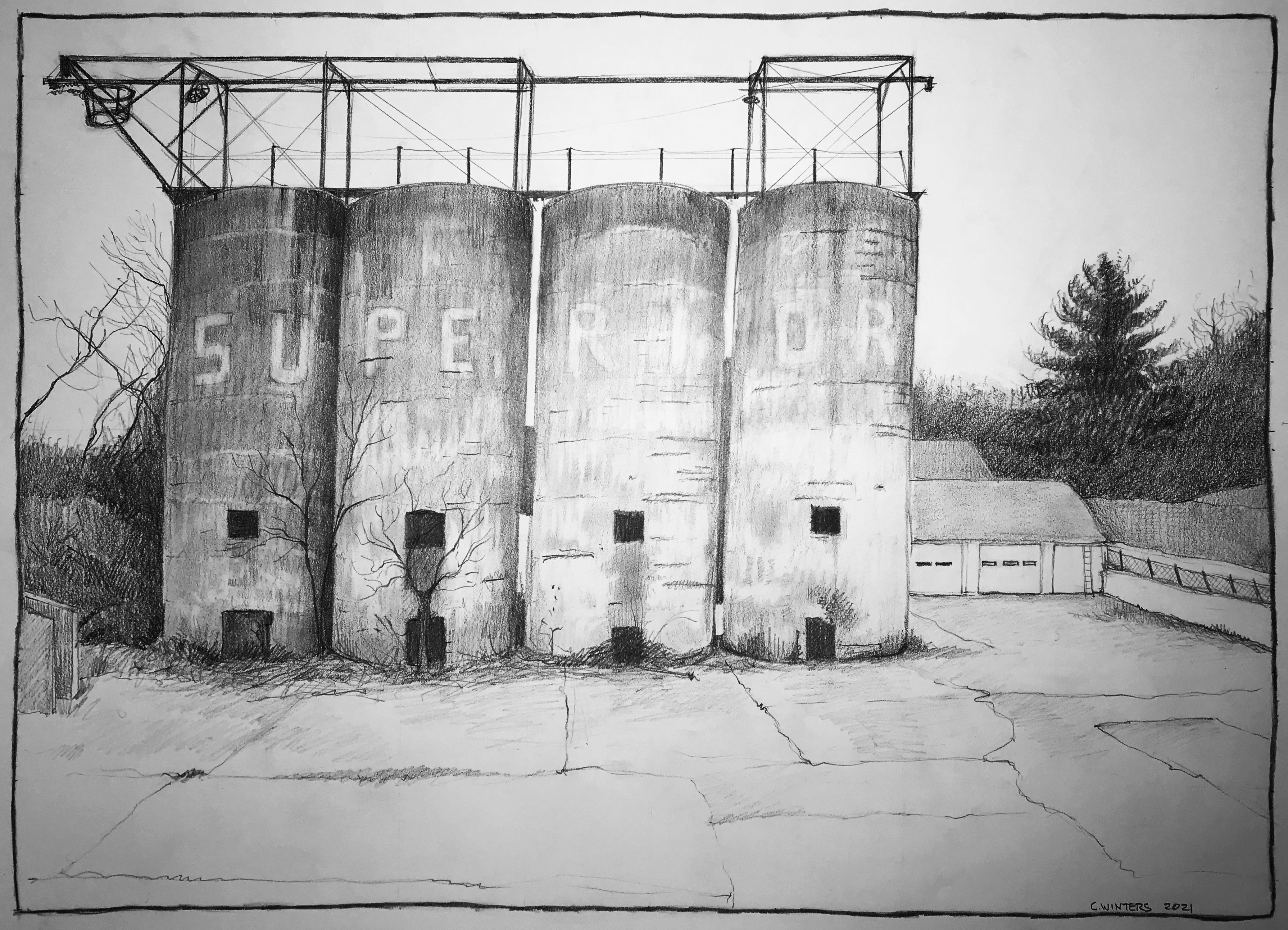 “The Superior Coal Company is an abandoned coal yard and local landmark in Dayton, Kentucky. The concrete silos remain as a monument to an old technology as new green energy technologies are embraced, even by the coal industry.”