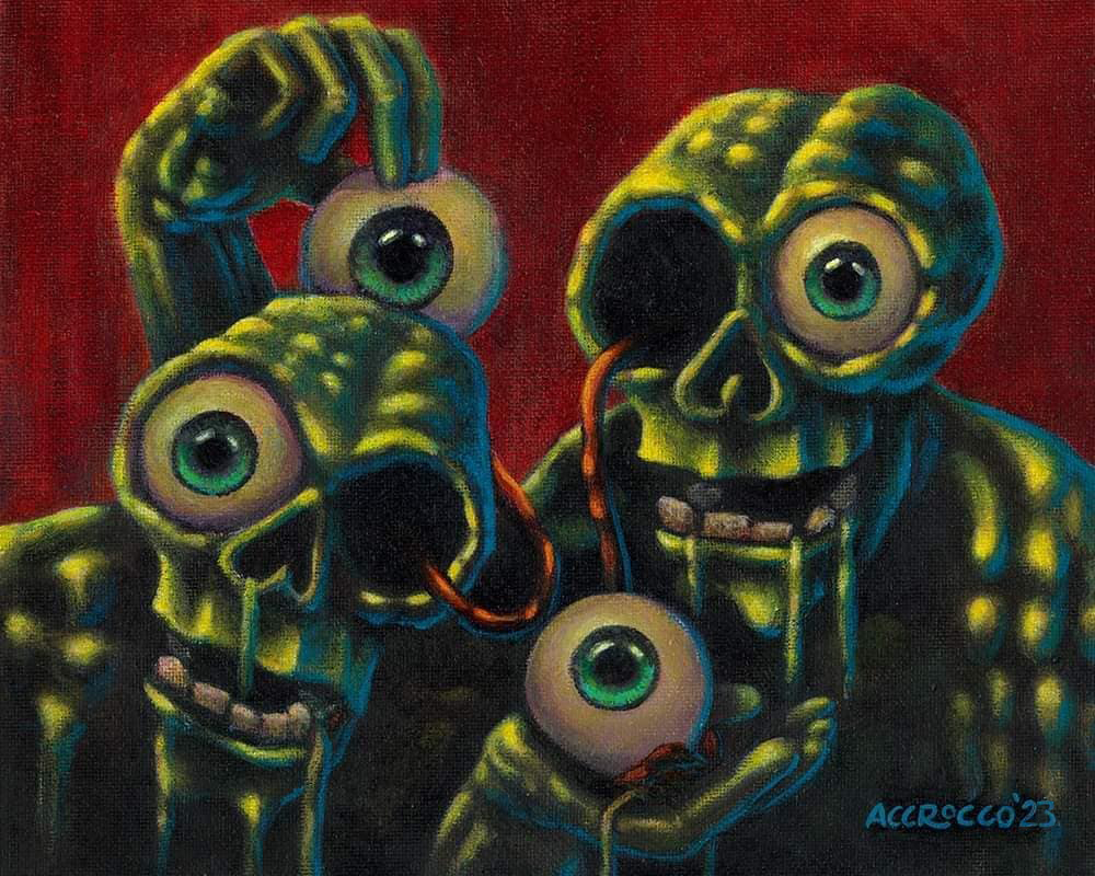 ARTIST BIO: Anthony Accrocco is a painter from Dayton, Ohio. His work is a vivid, pulp-inspired universe of the darkly beautiful, often featuring a palette of psychedelic colors and surreal, bizarre figures. Most subjects dive into the human psyche, exploring themes of mental and emotional well-being.