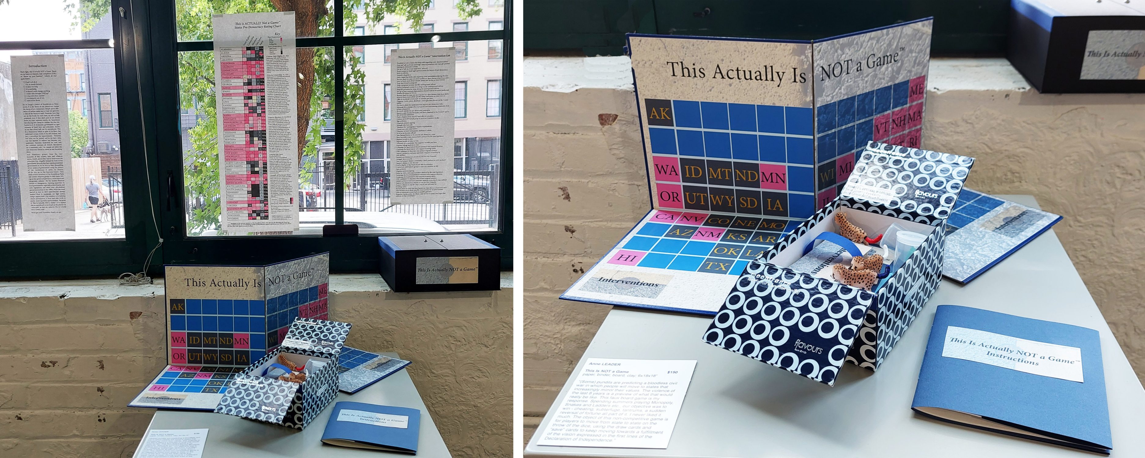 “(Some) pundits are predicting a bloodless civil war in which people will move to states that increasingly mirror their values. The violence of the last 8 years is a preview of what that would really be like. This faux board game is my response. Spending summers playing Monopoly, Snakes and Ladders etc., our objective was to win – cheating, subterfuge, tantrums, a sudden reversal of fortune all part of it. I never liked it much. The object of this non-competitive game is for players to move from state to state on the throw of the dice, using the draw cards and “save” cards to keep moving towards a fulfillment of the vision expressed in the first lines of the Declaration of Independence.”