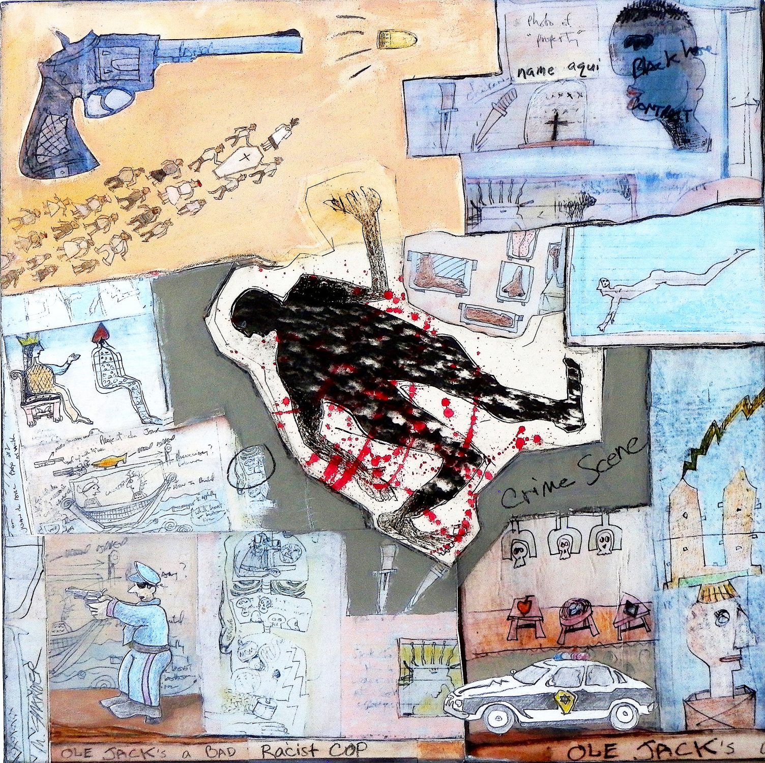 “My interest in the Peace & Justice show follows my need as an artist to make comments, through my artwork, on various social/political problems. Before this painting happened I was viewing TV news and reading about the needless killing of innocent people of color, often by those being paid to protect all citizens. I thought at first it was a one-off event but no, it seems to continue. I feel artists can shed light and awareness on this subject.