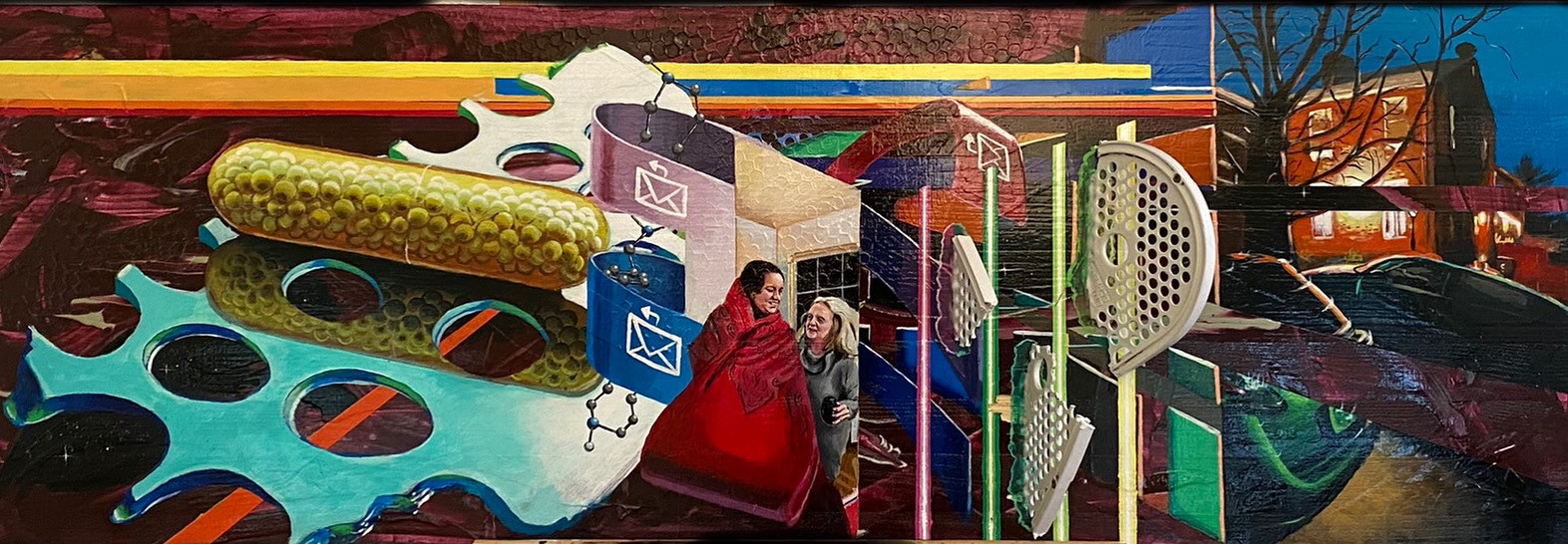 “The painted images, iconography, textures and materials that constitute this piece are all communicative of a long neighborhood narrative which resulted in a beautiful moment of reconciliation between two friends.”