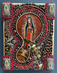 ARTIST BIO: Kymberly Henson has been working in hand painted, and shibori resist textiles as well as mosaic and mixed media for many years. In all of her work one will find narratives from her life and from lives that have touched her, particularly those of the powerless and invisible, who bear the brunt of injustice and chaos. Kymberly’s work has been exhibited in shops and galleries throughout the United States. She lives in Cincinnati with her husband, cats and flowers.