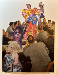 “The art form and cultural phenomenon of drag is under attack by current conservative forces who are attempting to legislate it away. They argue that drag corrupts children. This piece imagines a world in which some of those older suited white men enjoy a boardroom drag show in pursuit of selecting an imaginary drag museum’s beautiful exhibits.”