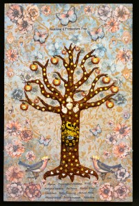 “In my art piece, the all-seeing eyes symbolize protection from evil, the crowned birds represent rebirth, and anatomical heart with flowers represents strength, power, passion, and growth.”