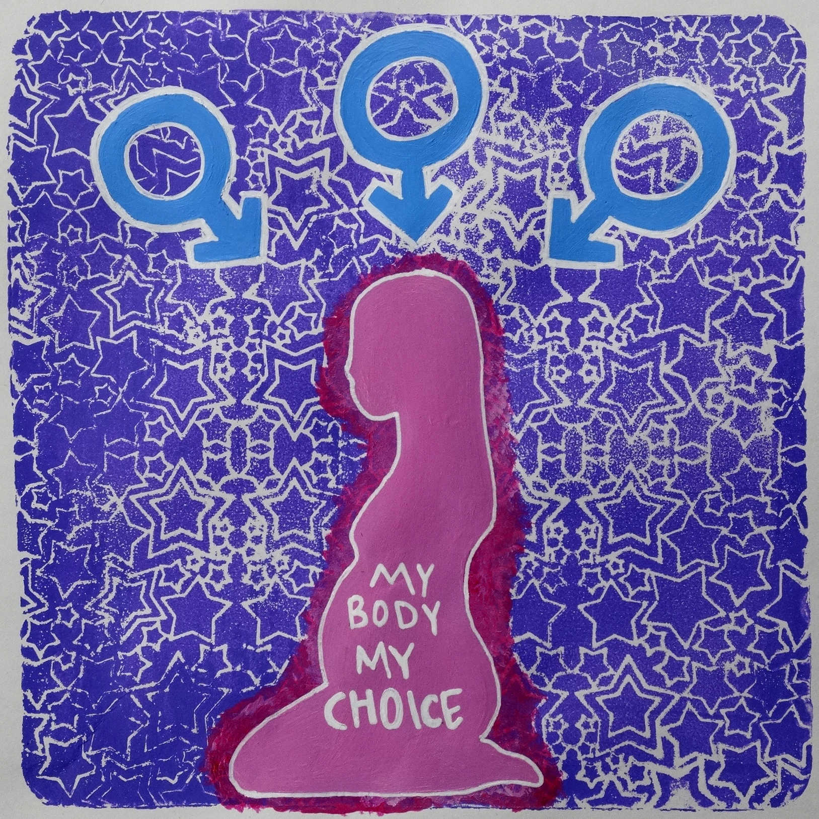 “The human rights declaration I chose was Women’s Rights. I was trying to communicate the message that everyone should have control over their bodies. No one should be allowed to put a law on someone else’s body. My piece communicates that men with higher power try to choose what is best for a woman’s body. The pregnant woman in the image is looked down on by the “symbol” of a man. This woman is forced to carry a baby that she doesn’t want because some man put a law on her body. I want my piece to communicate that anyone should be able to share their opinion and shouldn’t let anyone make them do anything.”