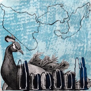 “‘Refuge in Plumage’ depicts a peacock, a symbol of protection and renewal, offering sanctuary with its vibrant feathers shaped into a nest for the disenfranchised. This artwork addresses the plight of those fleeing violence and poverty, using the peacock’s black and white plumage to highlight the hesitance of some nations to provide refuge. It encourages empathy and responsibility, reminding viewers of the resilience of asylum seekers and the transformative power of our humanity in facing global challenges.”