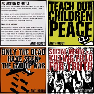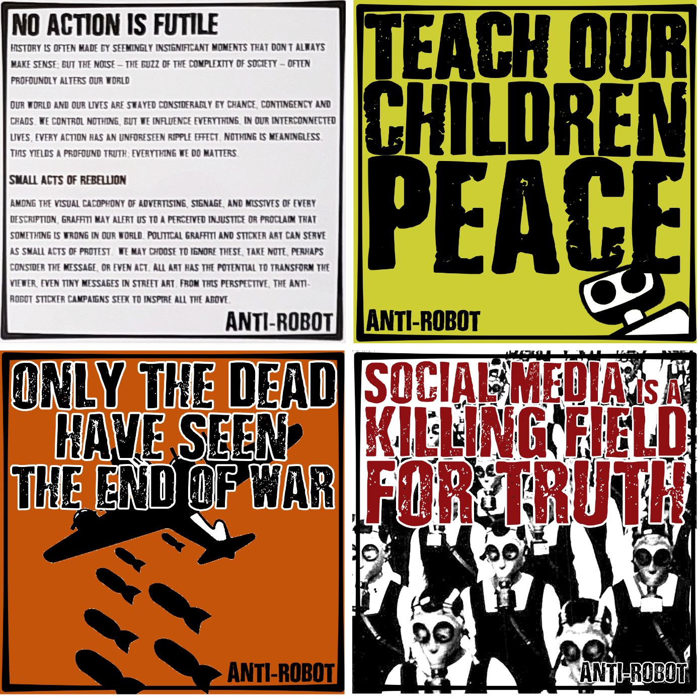 “Digital prints documenting some of the Anti-Robot Army’s street art/sticker campaigns.