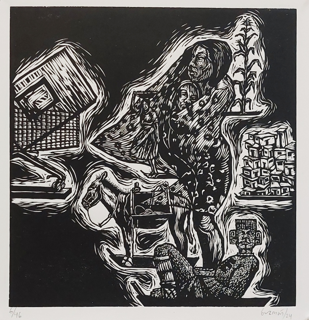The theme revolves around migration. Today, various human groups from plundered nations and governments controlled by “colonialism” are forced to seek better economic conditions outside their country of origin. The transfer involves carrying every element that gives identity to the migrant human face. It is also accompanied by hope and uncertainty at the arrival to a place that awaits them as new “humans” and consumers of goods.