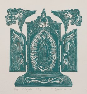 My print reflects on pre-Columbian cultures, passing through the colonial past in Oaxaca, showing the religious syncretism of the present, and how each individual has a symbolic burden with which they struggle internally so as not to be judged for their beliefs.