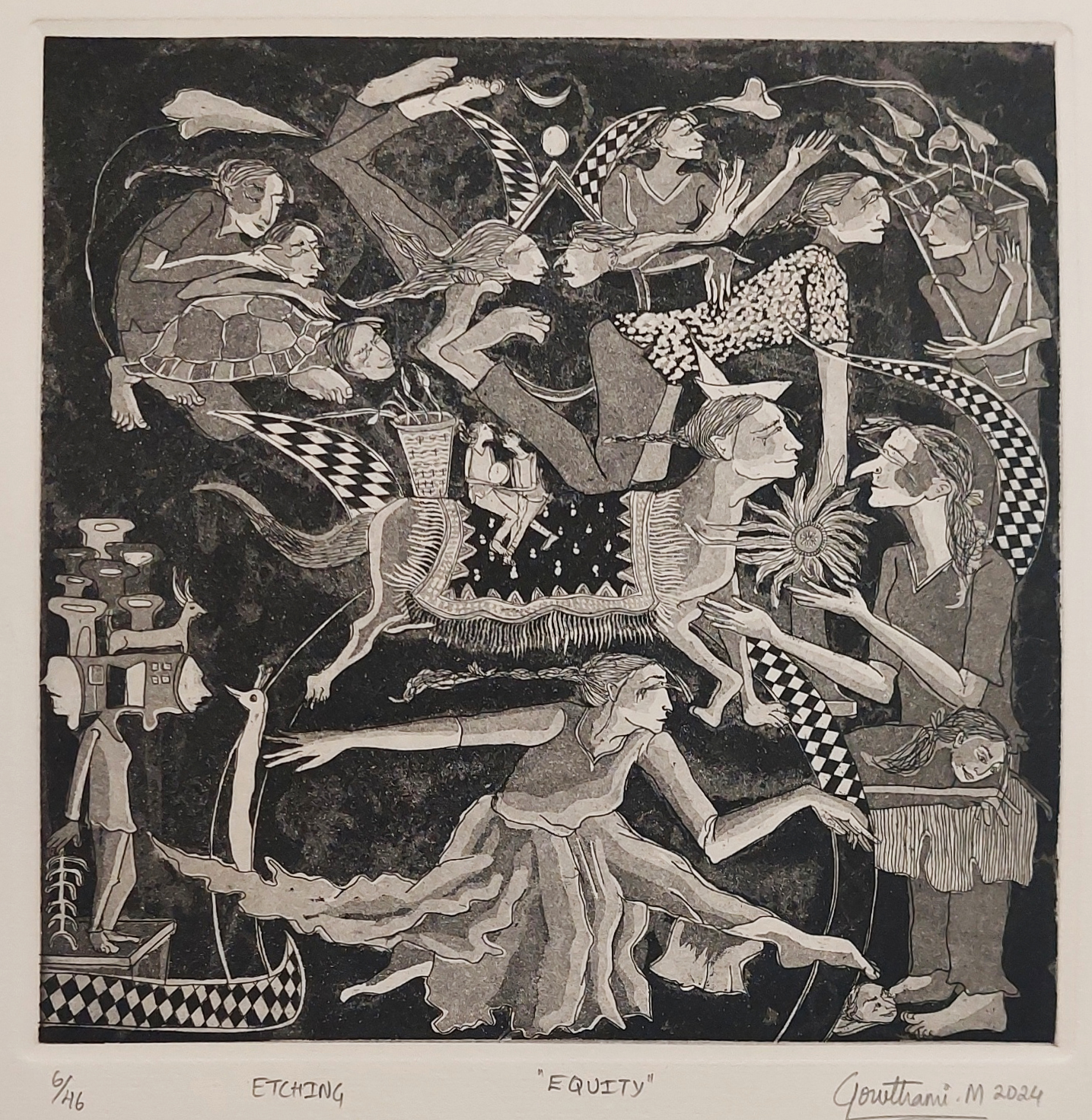 The textures and lines in my prints are deliberately crafted to evoke a sense of raw emotion and to provoke thought. The tactile quality of the prints invites viewers to not only see but feel the weight of the stories being told. This sensory engagement is crucial in fostering a deeper connection and empathy towards the subjects of justice and human rights.