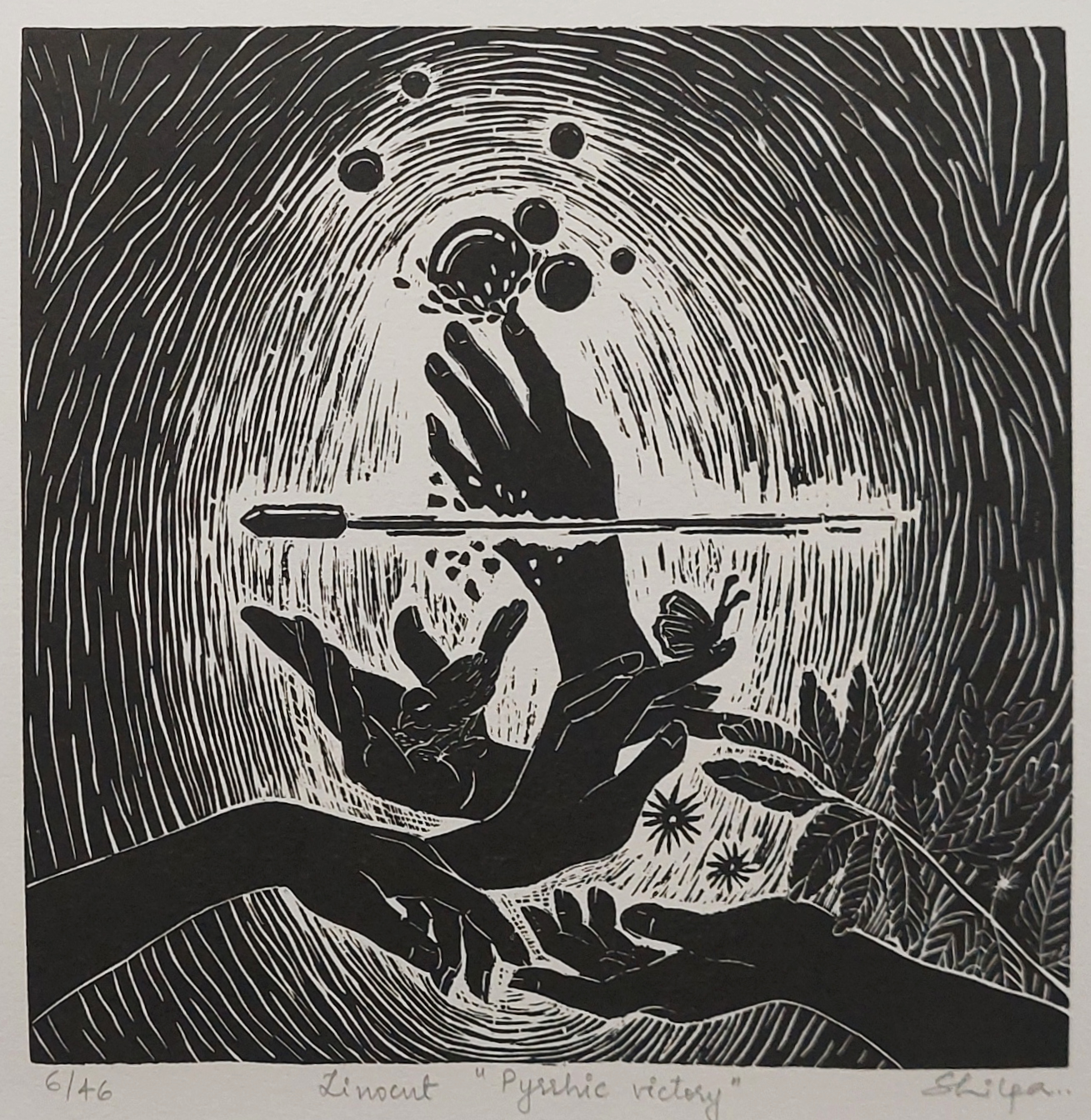linocut; paper 11×11″