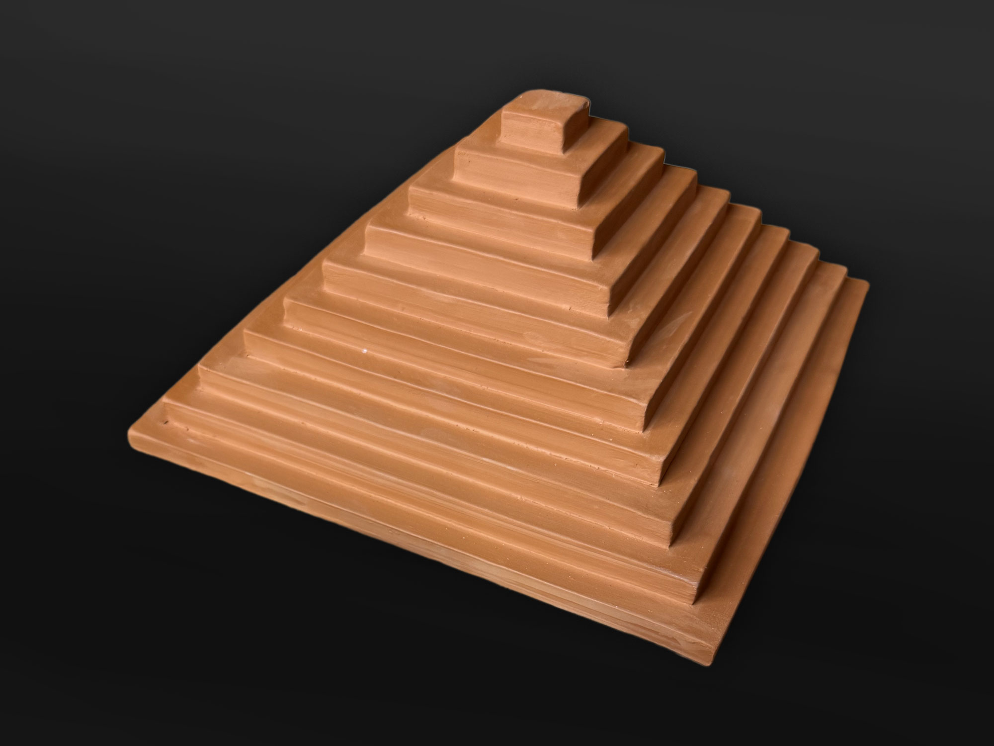 “This hand-built pyramid echoes ancient architecture, reimagined as a vessel for private meaning. Formed in terra cotta, it channels ancient monumentality into something personal: a ritual object for solitude and self-inquiry. Shedding the weight of empire, it invites reflection and emotional quiet, guiding the viewer gently toward their own inner world.”