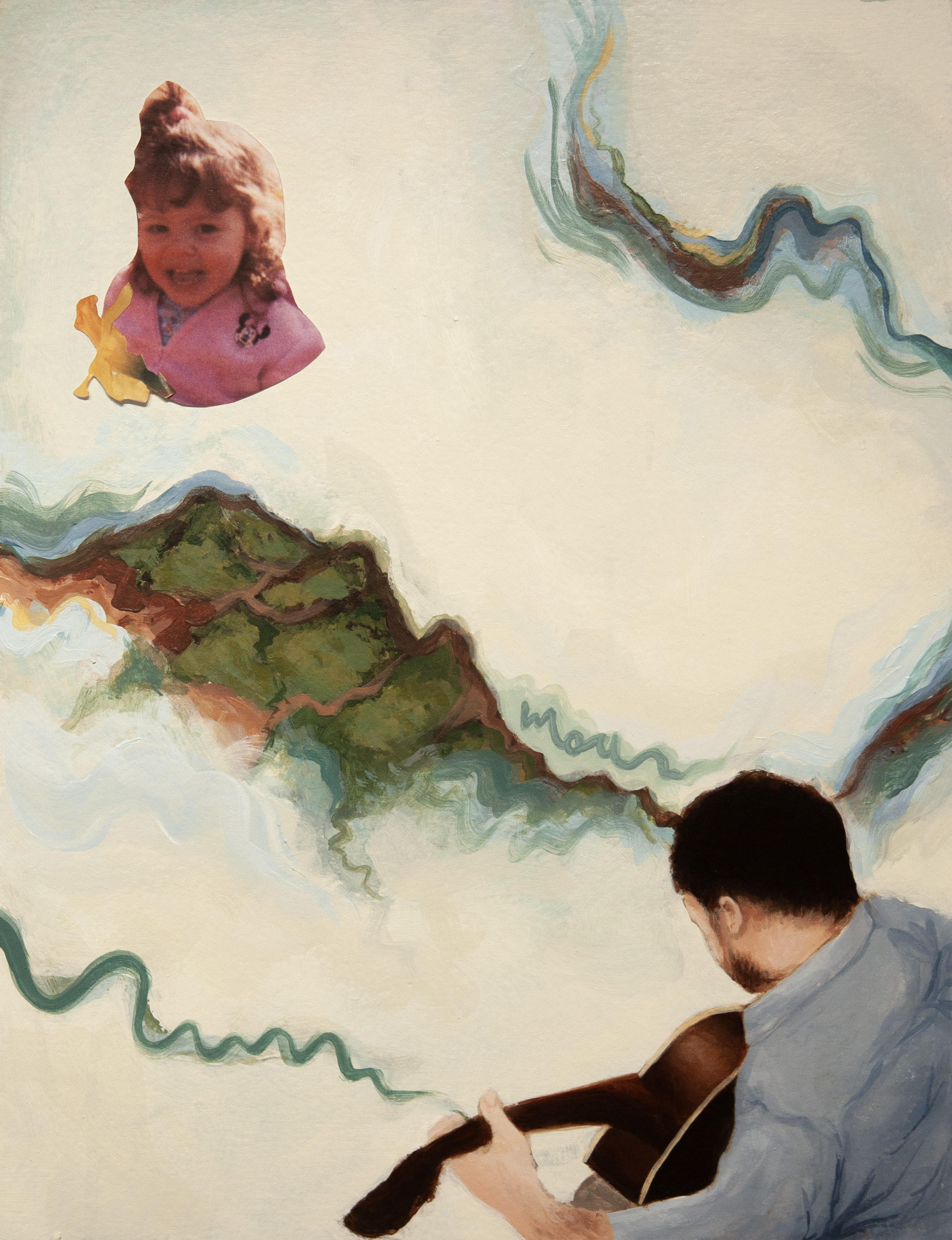 acrylic and collage on panel; 18×14″