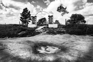 “Wounded Knee Cemetery on the Pine Ridge Reservation in South Dakota is the site of a mass grave of 300 Lakota Sioux massacred in 1890 by the US 7th Calvary. The image is only manipulated by the addition of the infamous historic photo of Chief Spotted Elk who died there.”