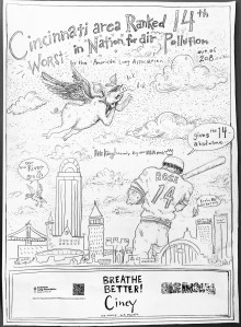 “The Fly Pig in the Queen city Sky amidst the pollution.”