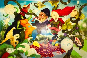 “My painting is about fun and happiness being drained from everyday people due to the extreme evil and corruption of governmental “leaders” throughout the world, including the United States of America. The anxiety inflicted on the less fortunate is depicted in the painting title.”