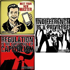 “Digital prints documenting an Anti-Robot sticker graffiti campaign.”