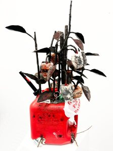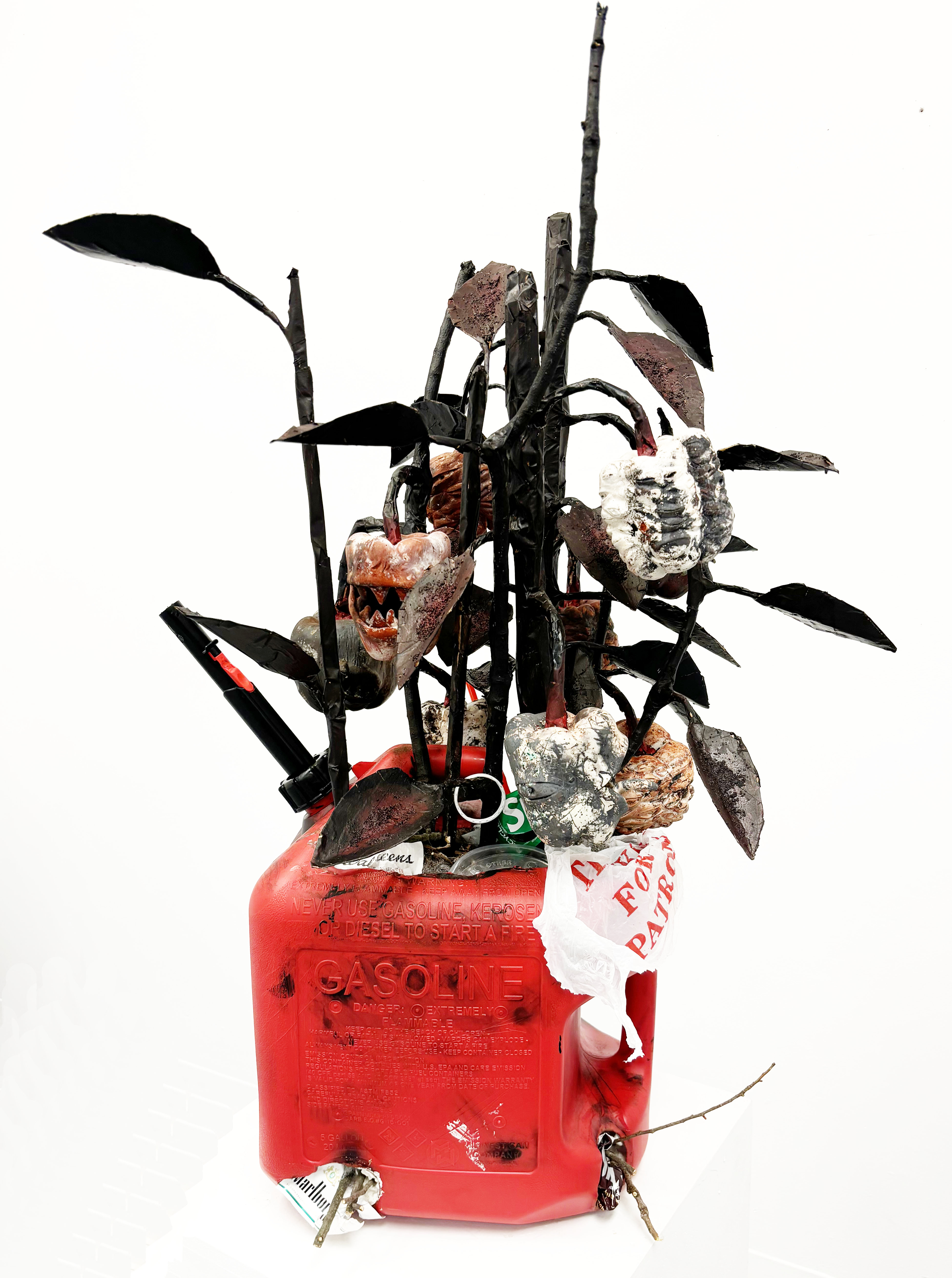 “The Pepper Plant is a work created to represent our potential future, a dystopian world in which we succumb to the pollution that we have subjected nature to. What once was something that provided us sustenance, has become a flesh-eating abomination growing out of the very can that caused its downfall. It is a metaphor for the injustice that is poisoning our planet, and thus, us.”