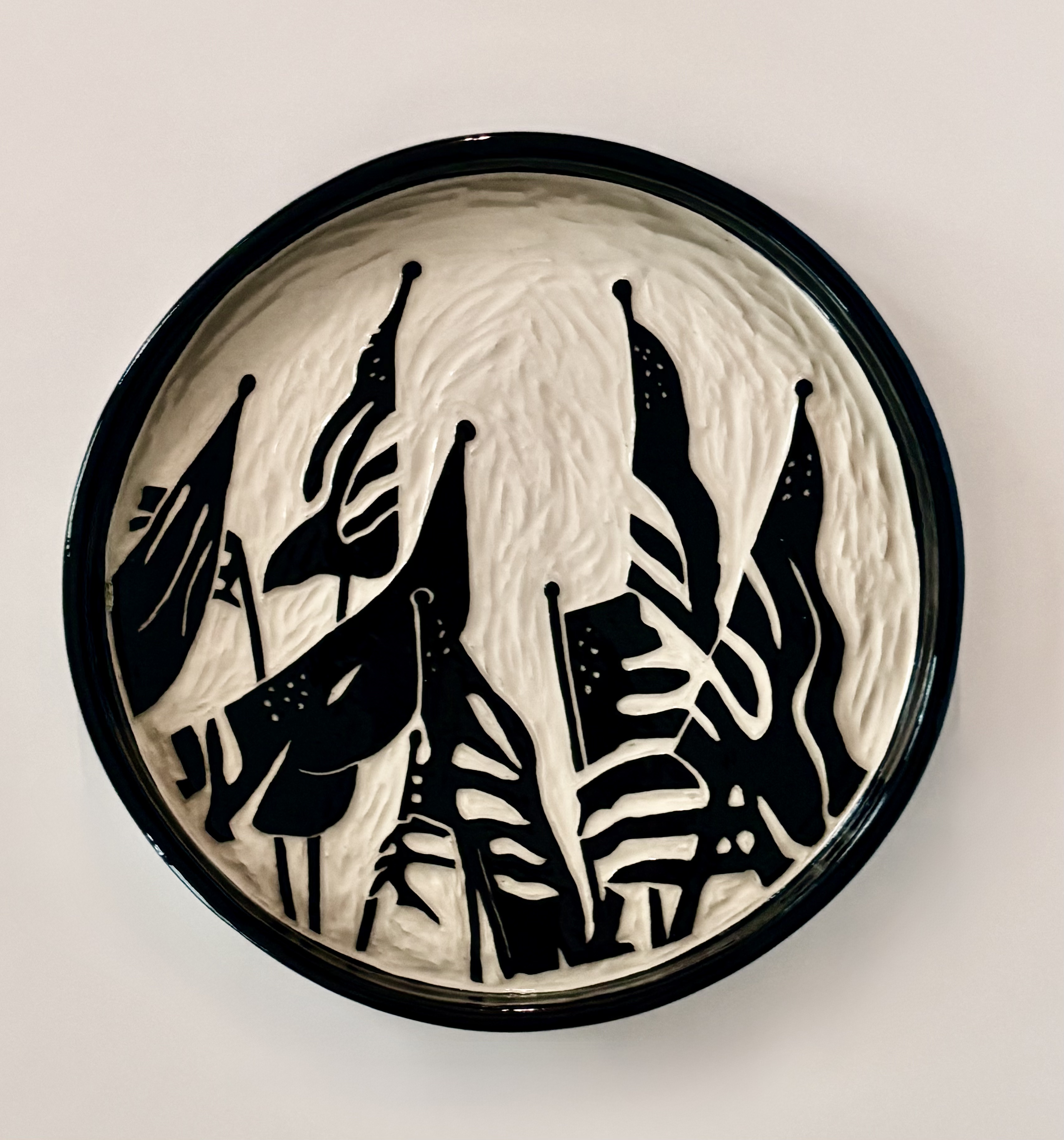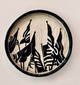 ARTIST BIO: Bonnie Mitchell is a local professional artist who creates one-of-a-kind ceramic artwork in her Milford studio. She creates striking black and sgraffito pottery. Twenty-five years ago she learned the basics of clay at Annie’s Mud Pie Shop. Since then she has been self taught. She has won awards at local art events and teaches sgraffito at Cincinnati Nature Center and Whistle Stop Clay Works.