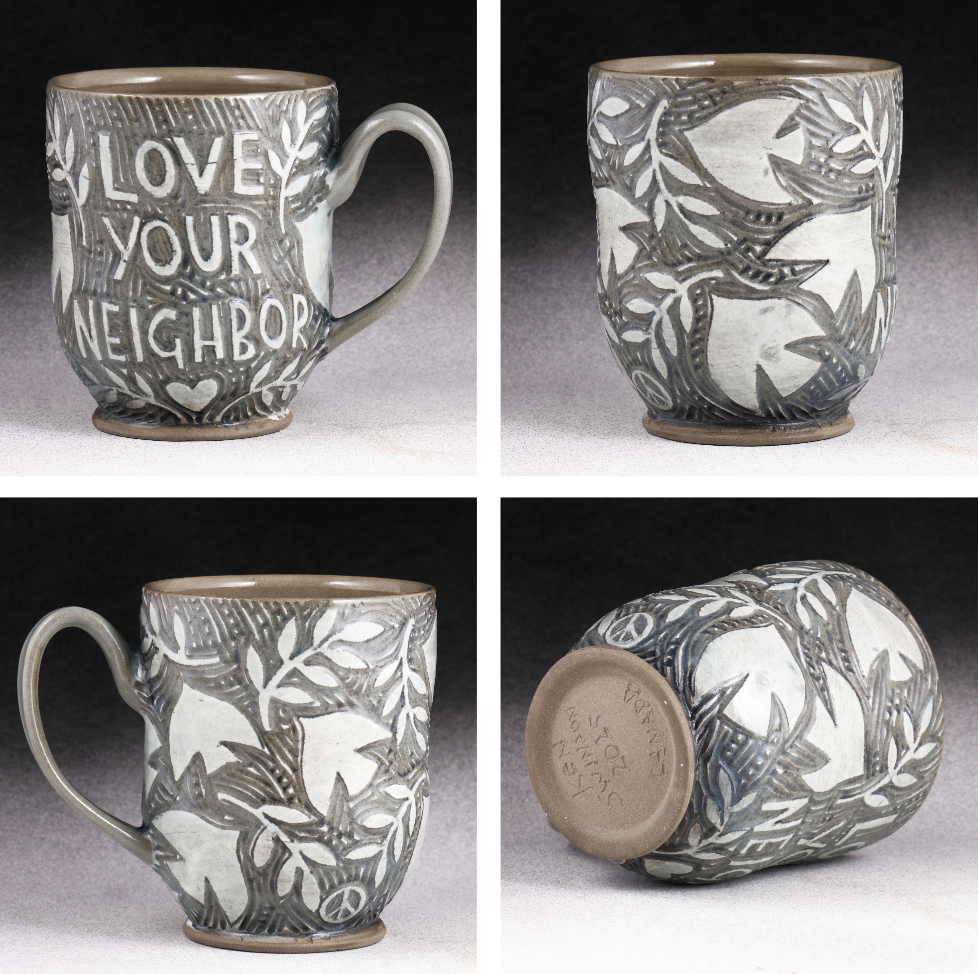 “I believe it is important to treat our neighbors with respect. I visited Canada for the first time earlier this year as a response to the USA’s sudden and aggressive trade position with Canada. I felt an urgency to get to know, and strengthen friendships, with my neighbors to the north. While there, I made new friends at a shared pottery studio—and made this cup!”