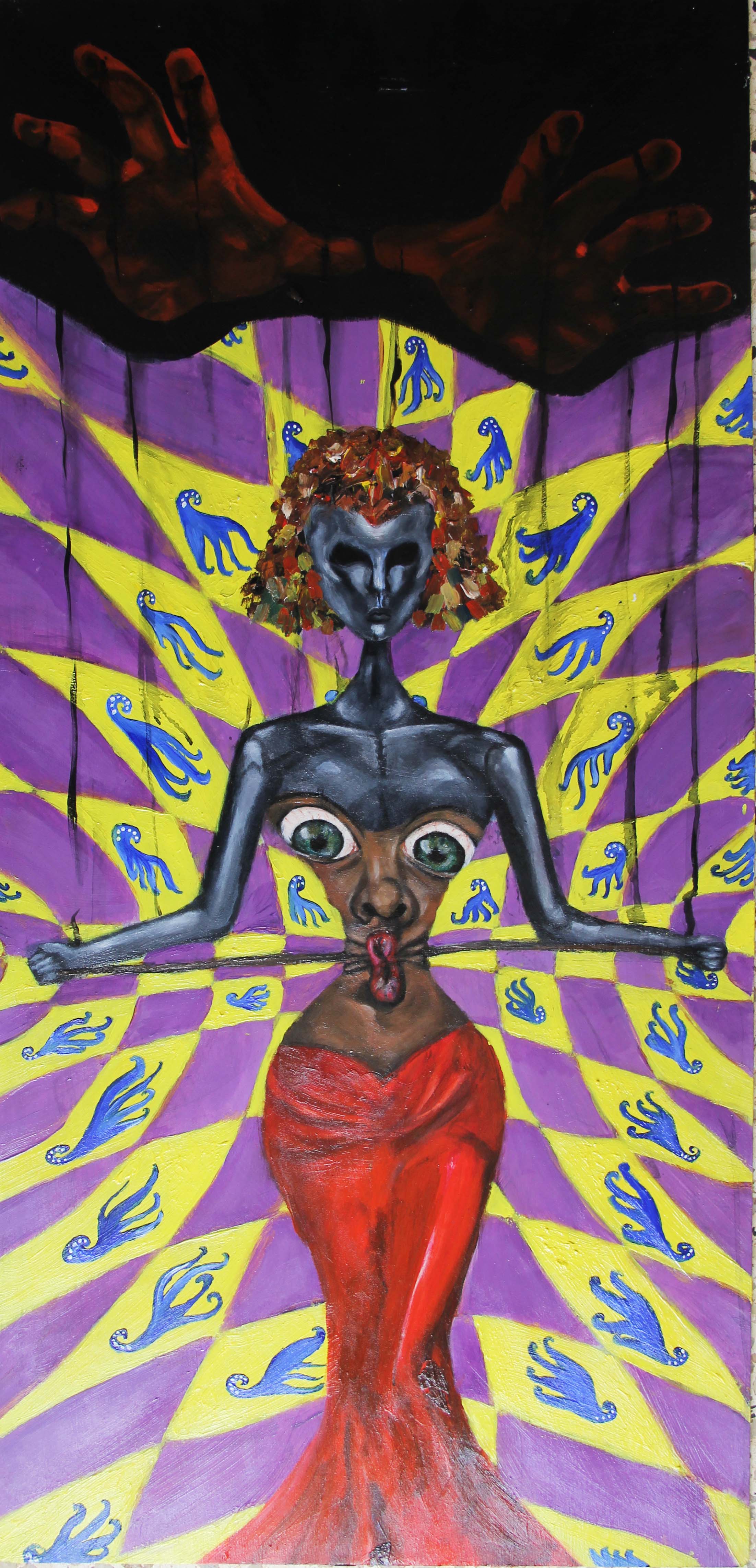 ARTIST BIO: Samantha Cherotich Kirui is a self-taught Kenyan artist whose practice explores femininity, empowerment, and identity. Embracing instinct over convention, she draws from lived experience and cultural narratives to merge the personal with the political. Her work transforms vulnerability into strength and challenges inherited norms, inviting dialogue on resilience, truth, and belonging.