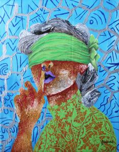 “She holds her truth within waiting for the day the net of society’s rule “Be Quiet” breaks – her voice rises above the cultural “Barriers” that blinded her.”