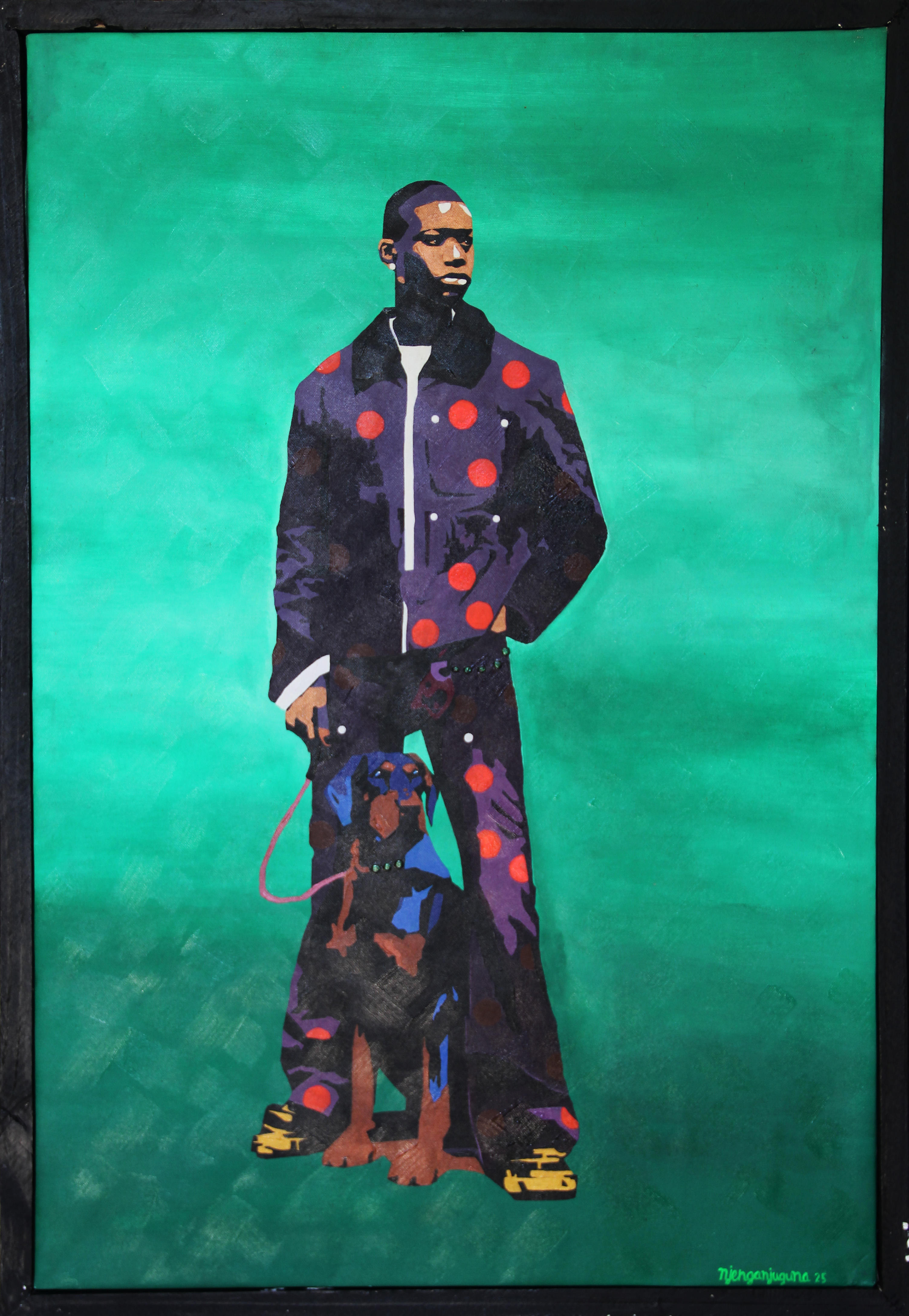 ARTIST BIO: Njenga Njuguna is a self-taught multidisciplinary artist whose creative journey began with hand-painted clothing, a fusion of fabric and expression. What started as a passion for design quickly evolved into a deeper calling: storytelling. Through various mediums including painting, mixed media, and wearable art, Njenga strives to celebrate and elevate the richness of African culture. His work is a love letter to the Kenyan heritage, its colors, traditions, rhythms, and untold narratives, blending ancestral inspiration with contemporary vision and creating art that speaks, connects, and empowers. Every one of his art works is a tribute to the beauty and resilience of Africa and her peoples’ lives.
