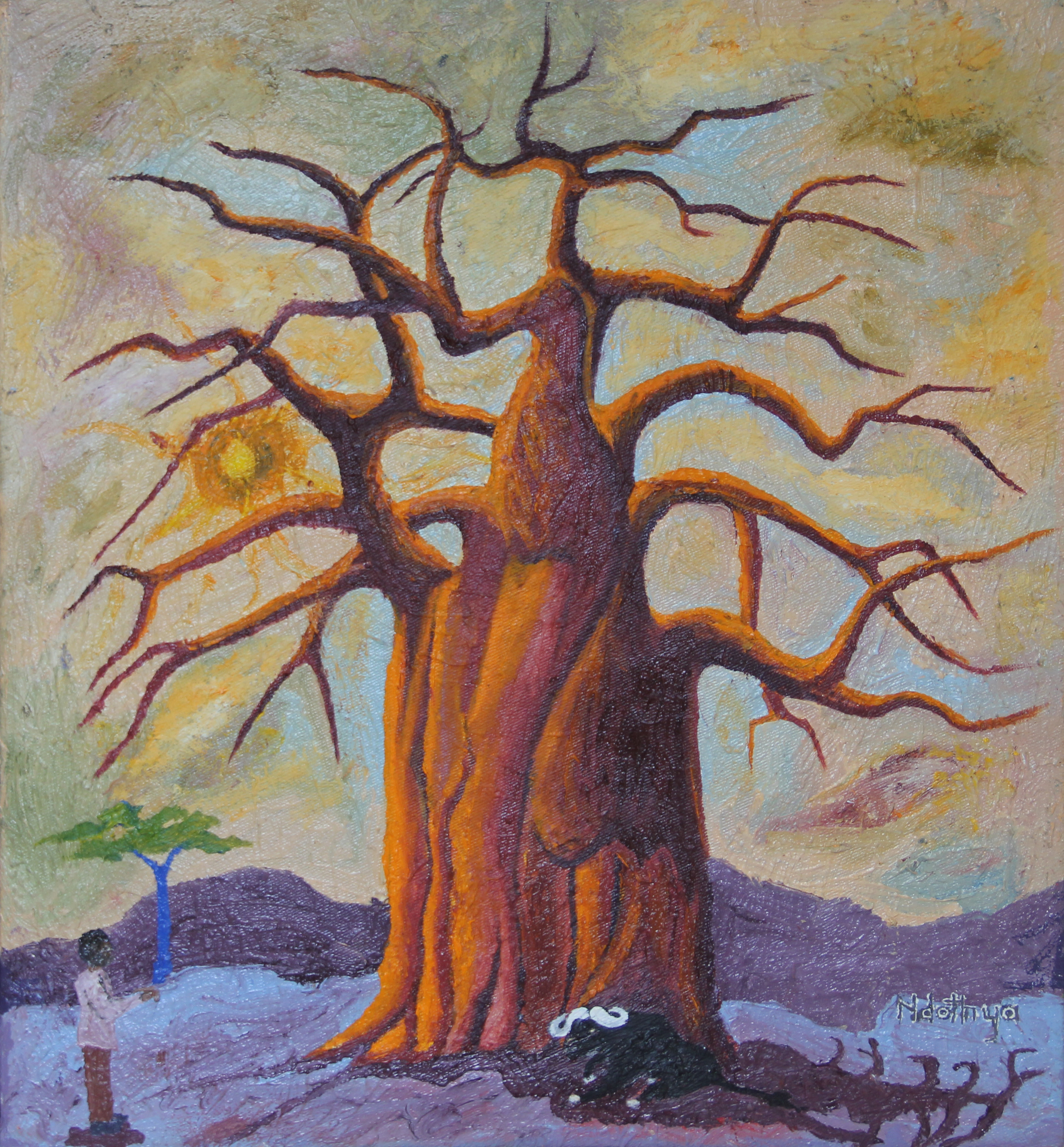 “Interaction of different parts of nature for mutual gains. The baobabs majestic stand-up providing shade and friendship for the baobabs. There is also the watch over of a person who acts as a tourist.”