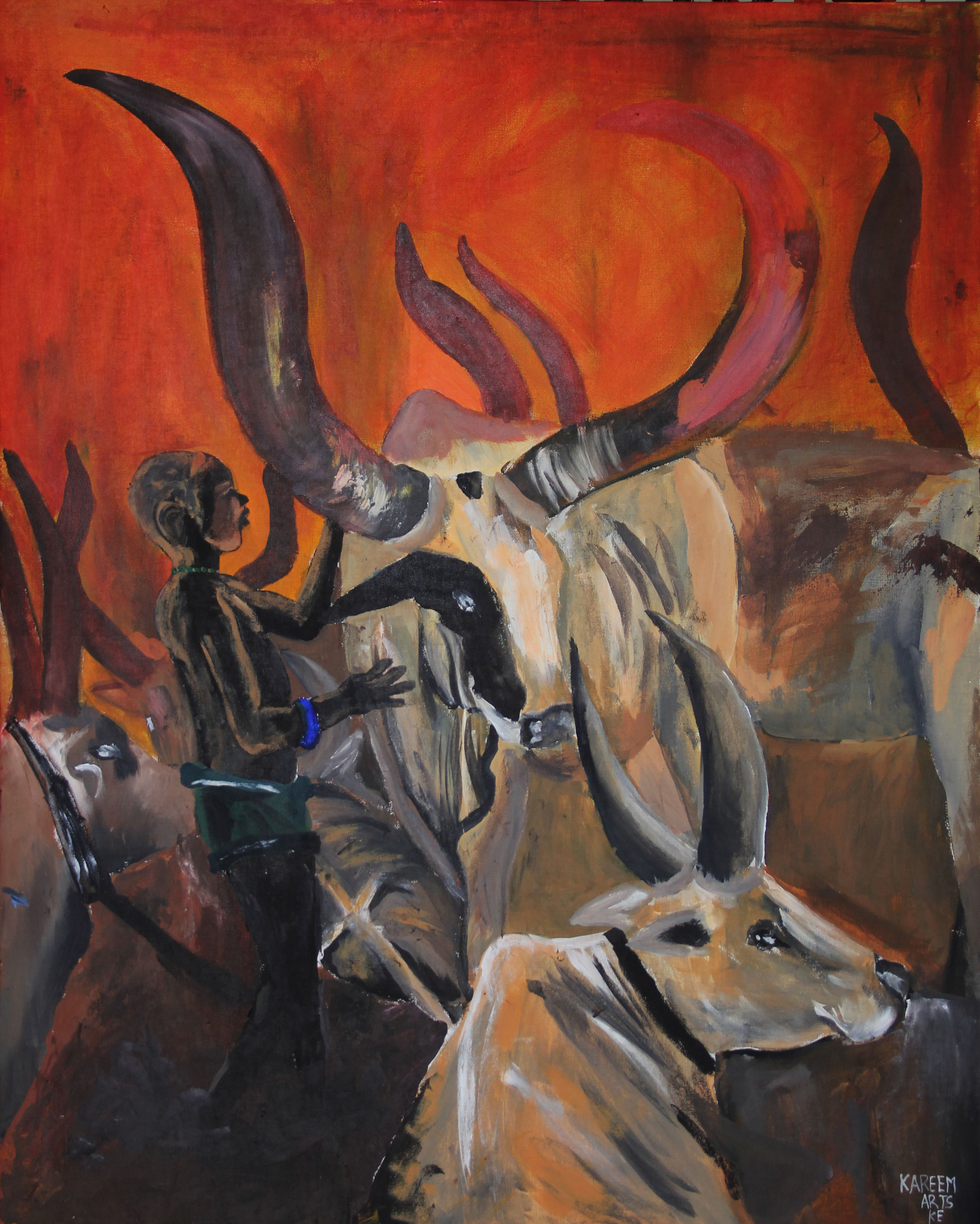 “A young herder stands among a cattle with long horns. This captures the hardship and bravery of the boy who looks dirty and unfitting. It shows how vulnerable the boy is; he can’t afford water to bath and cloth. It shows how society forgets the needs of young people.”